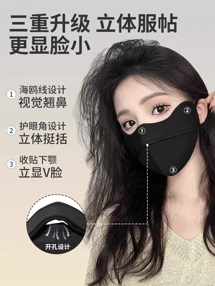Осенне-зимняя солнцезащитная маска для женщин, красивая ветрозащитная маска, регулируемая большая стерео 3D маска, солнцезащитный козырек и теплая маска.