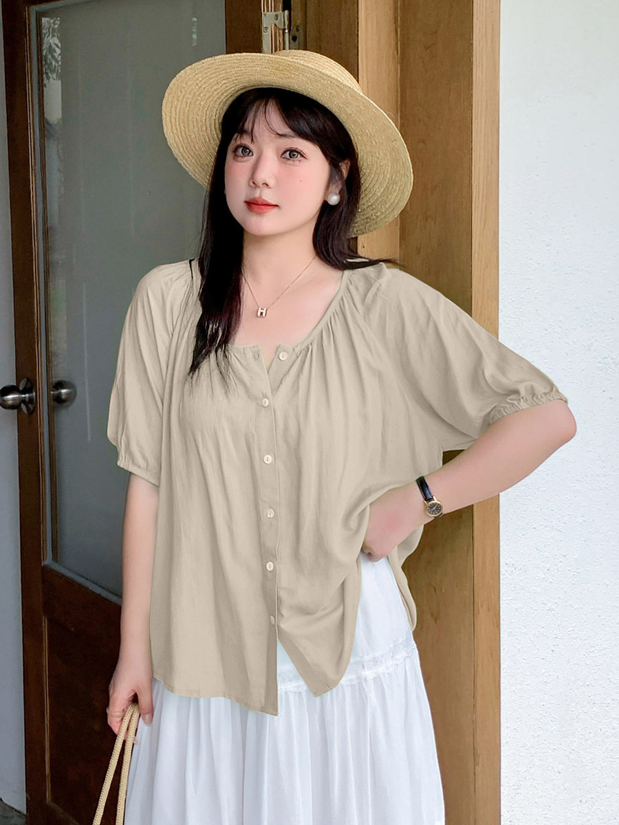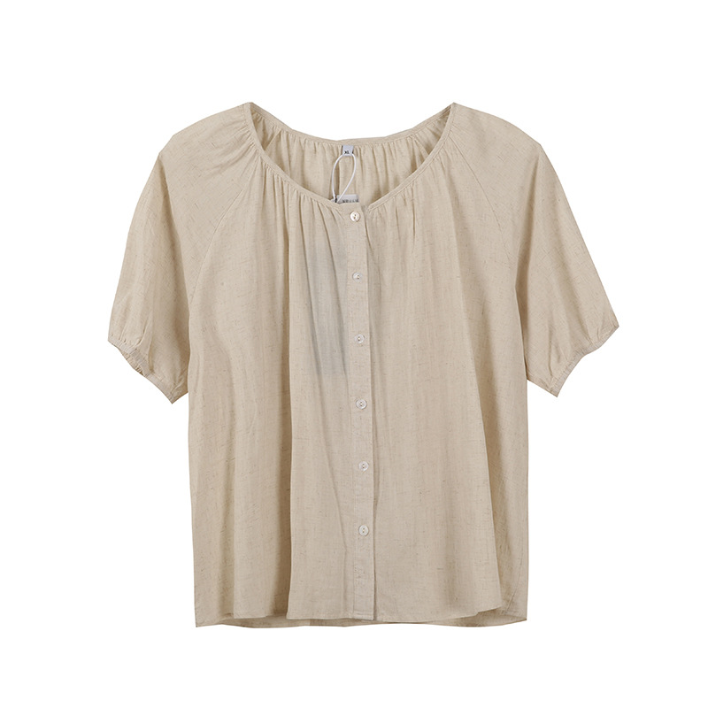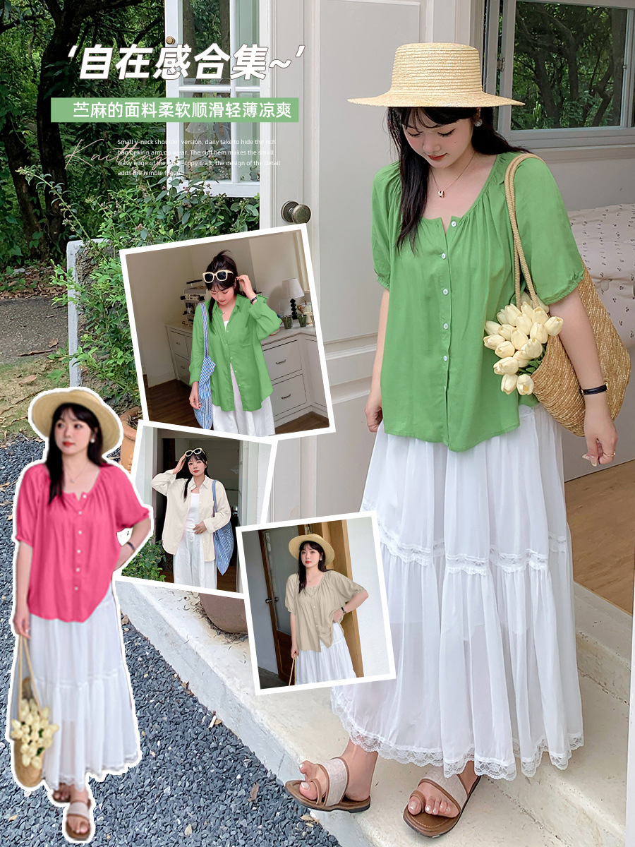 Рубашка-бэбидолл из хлопка и льна для женщин больших размеров, новая летняя модель, облегающая и прохладная, топ 250383