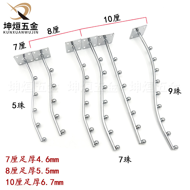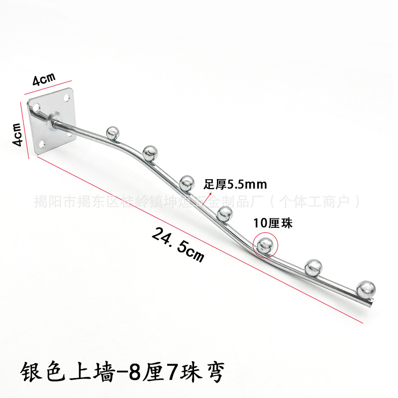 Настенный крючок для одежды, 7 бусин, 5 бусин, изогнутый крючок для ногтей, настенный шариковый крючок, прямой крючок для дисплея, черный, серебристый, интимный бюстгальтер, крючок для одежды