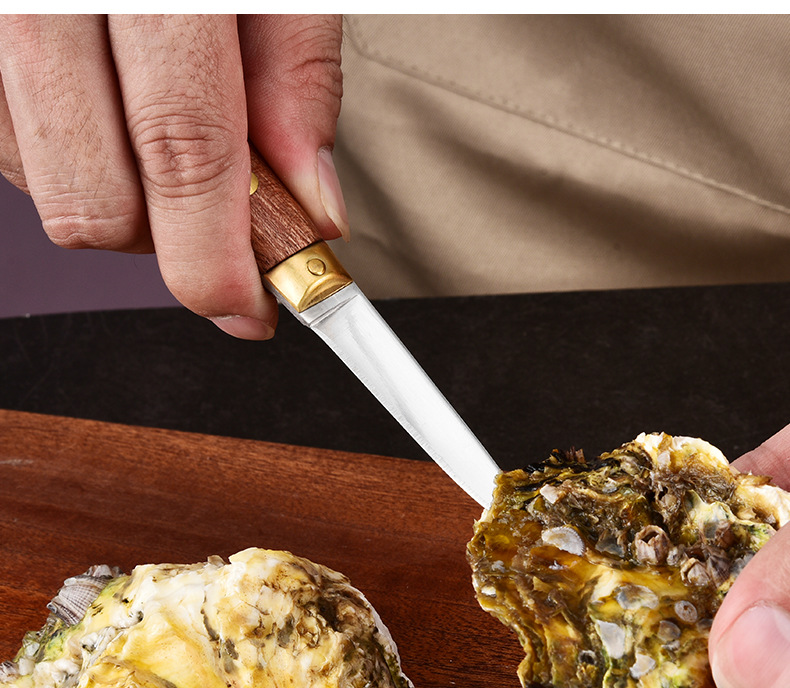 Нож для устриц из утолщенной нержавеющей стали с рукоятью из палисандра, открывалка для устриц, нож для морских раковин, нож для чистки раковин оптом, производство Янцзян