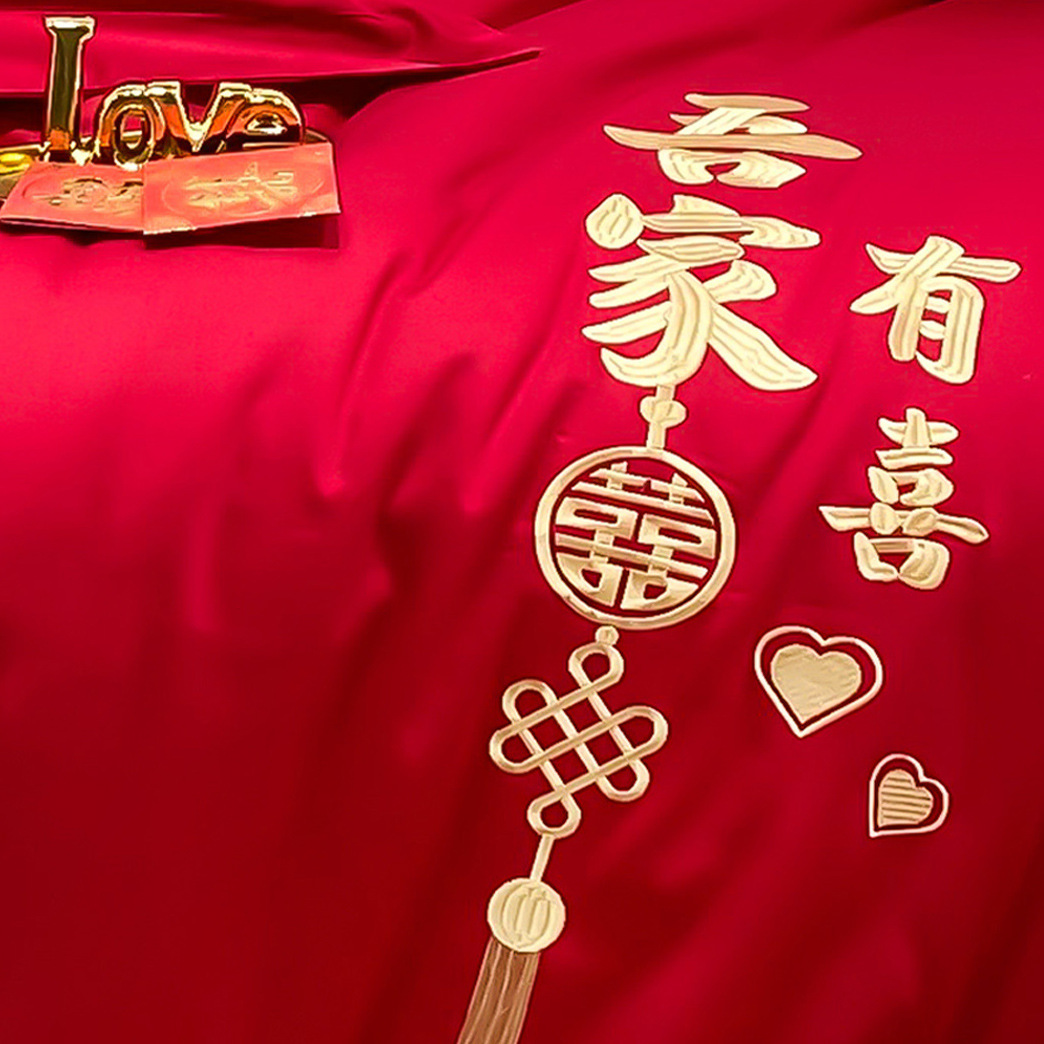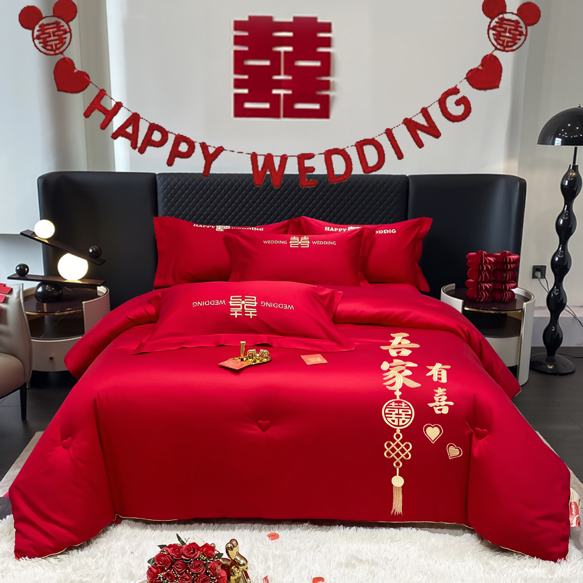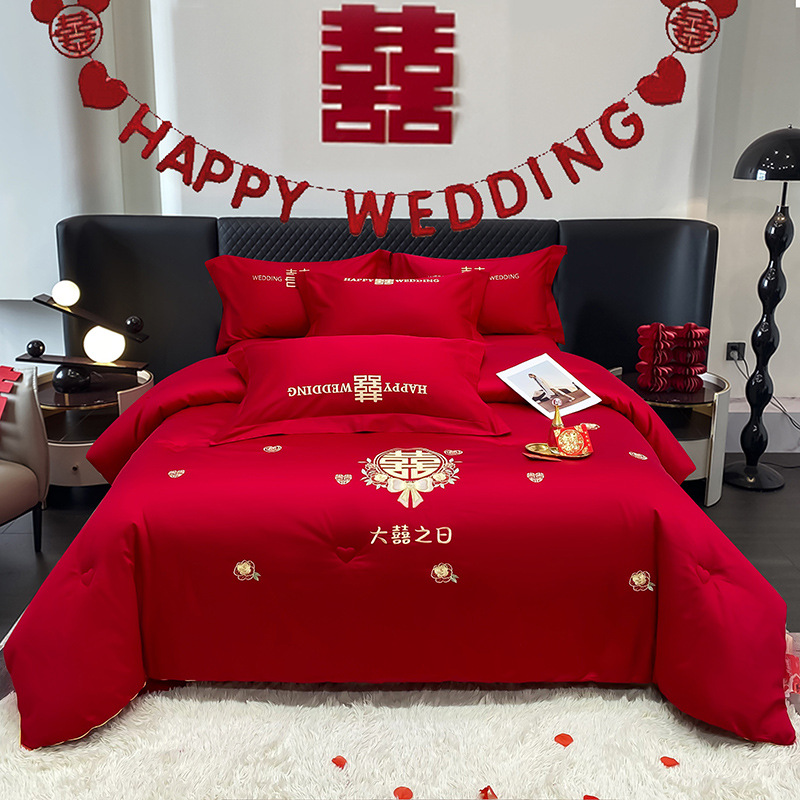 Ярко-красное свадебное одеяло - Романтика розы Чжо Ман; Большая красная радость приносится к двери Чжо Манфу.; Большая красная радость и радость в семье Чжо Мань; Яркое красное счастье приносит радость в счастливые события Чжо Мана.
