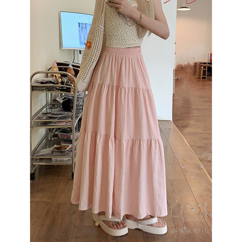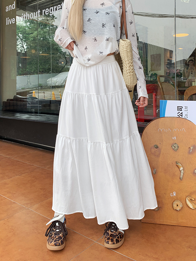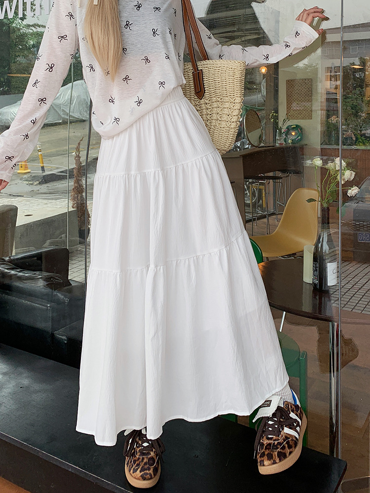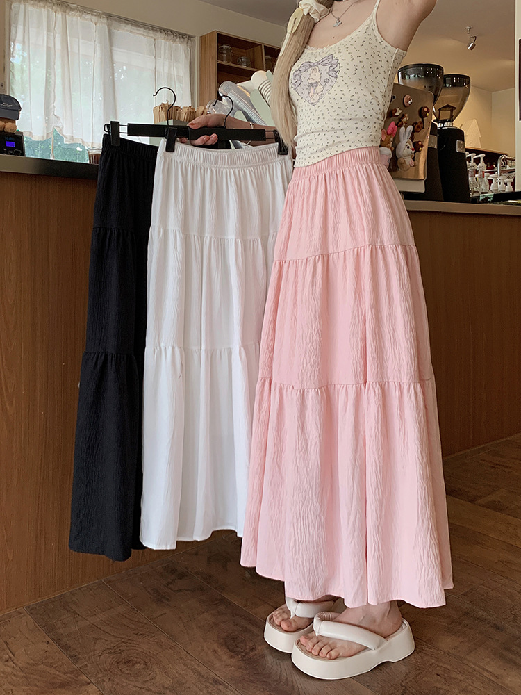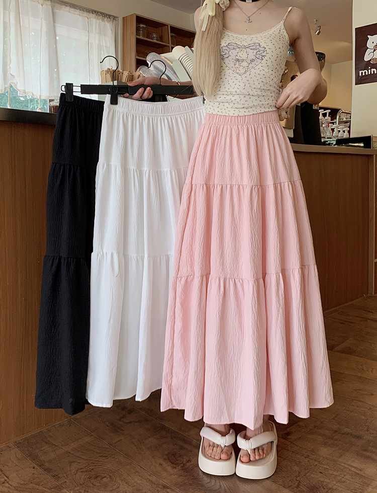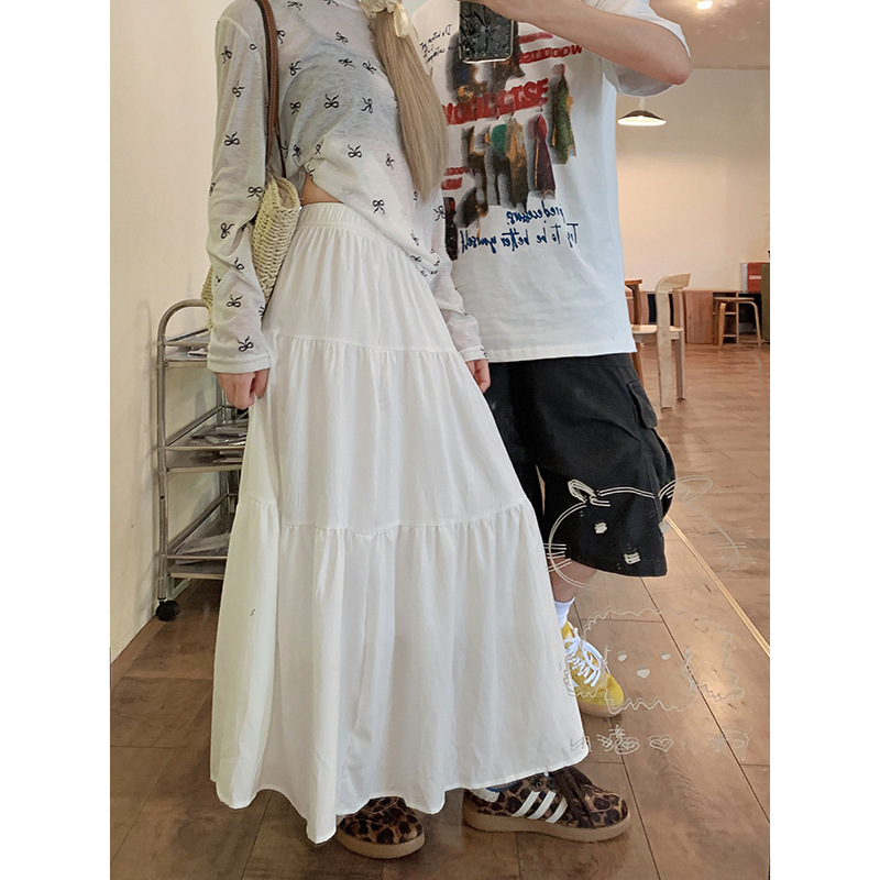 Белая юбка для торта Корейская нежная, высокая талия, тонкая, дикая юбка, эластичная талия, сладкая маленькая юбка среднего и длинная