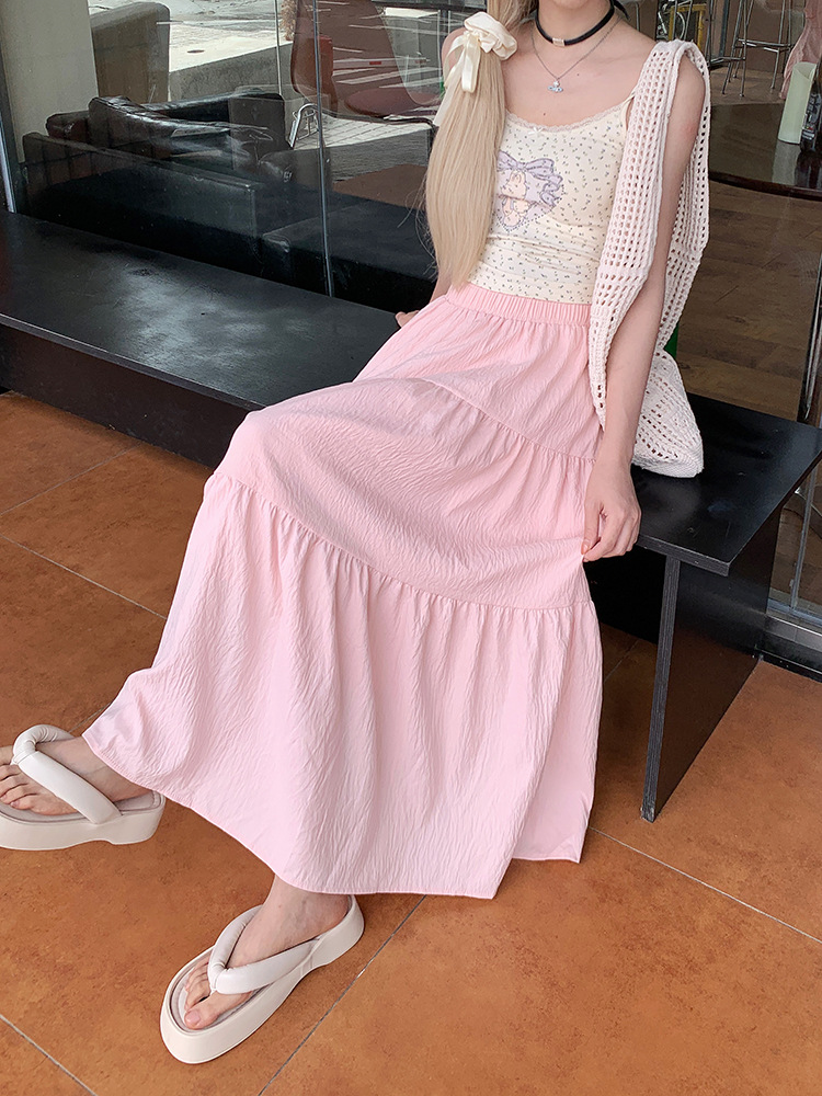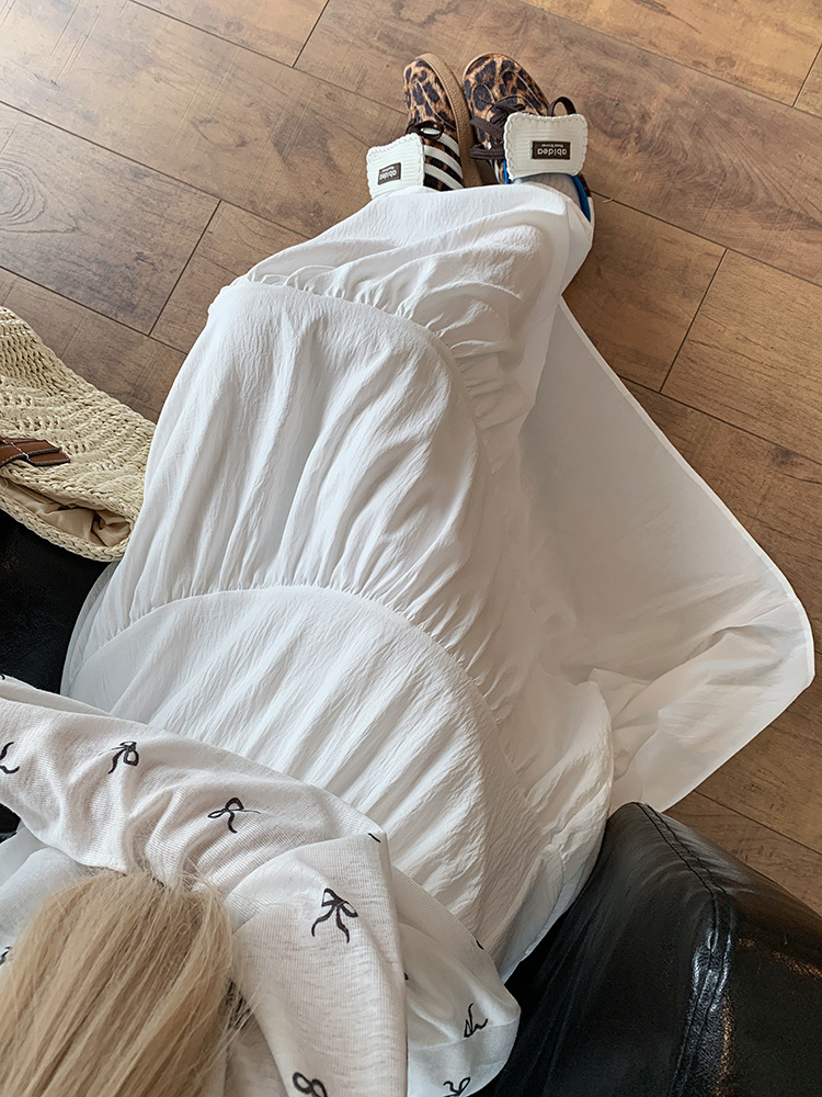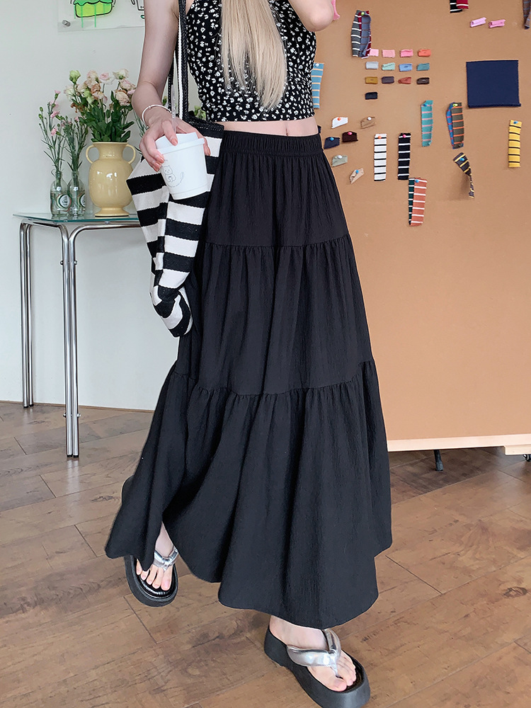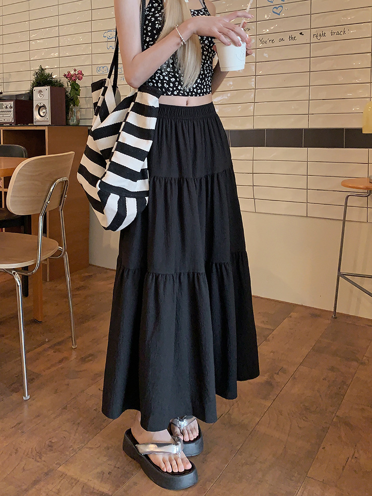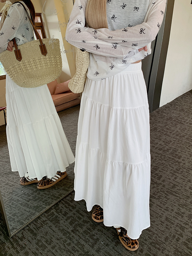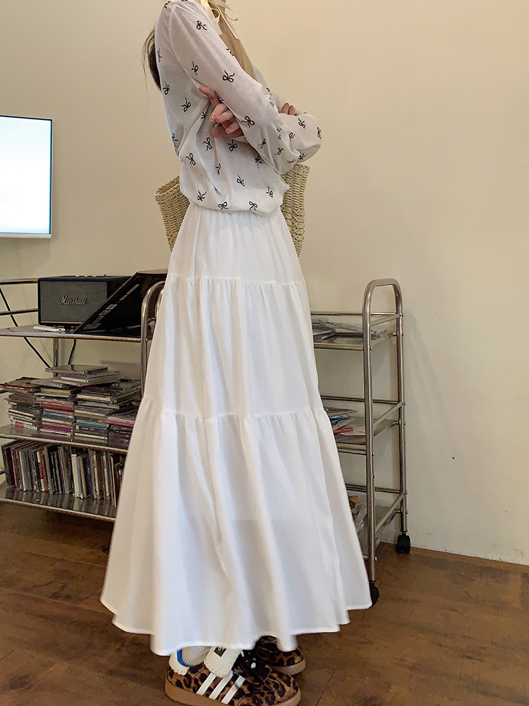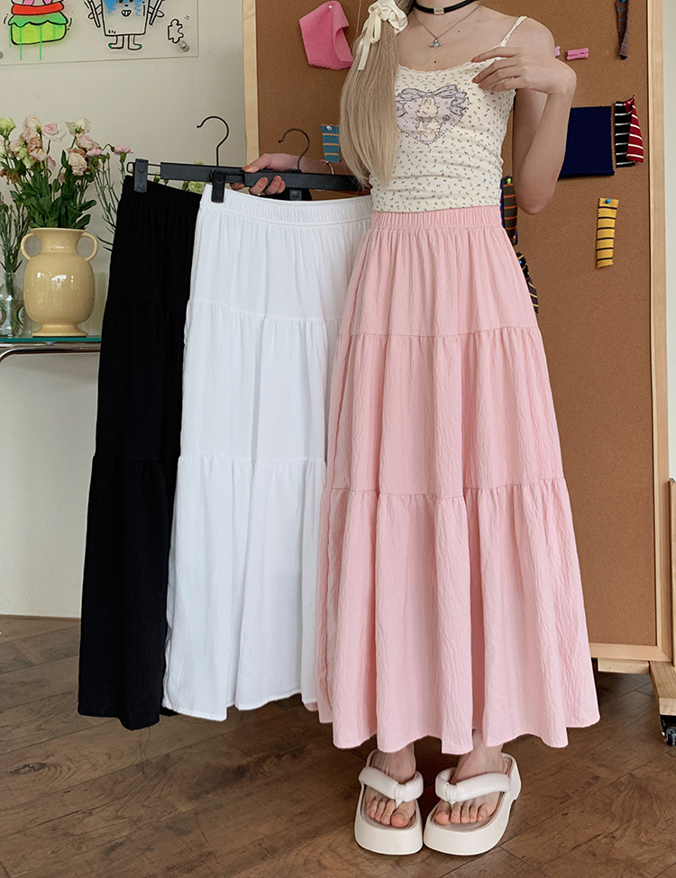 Белая юбка для торта Корейская нежная, высокая талия, тонкая, дикая юбка, эластичная талия, сладкая маленькая юбка среднего и длинная
