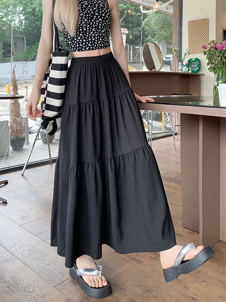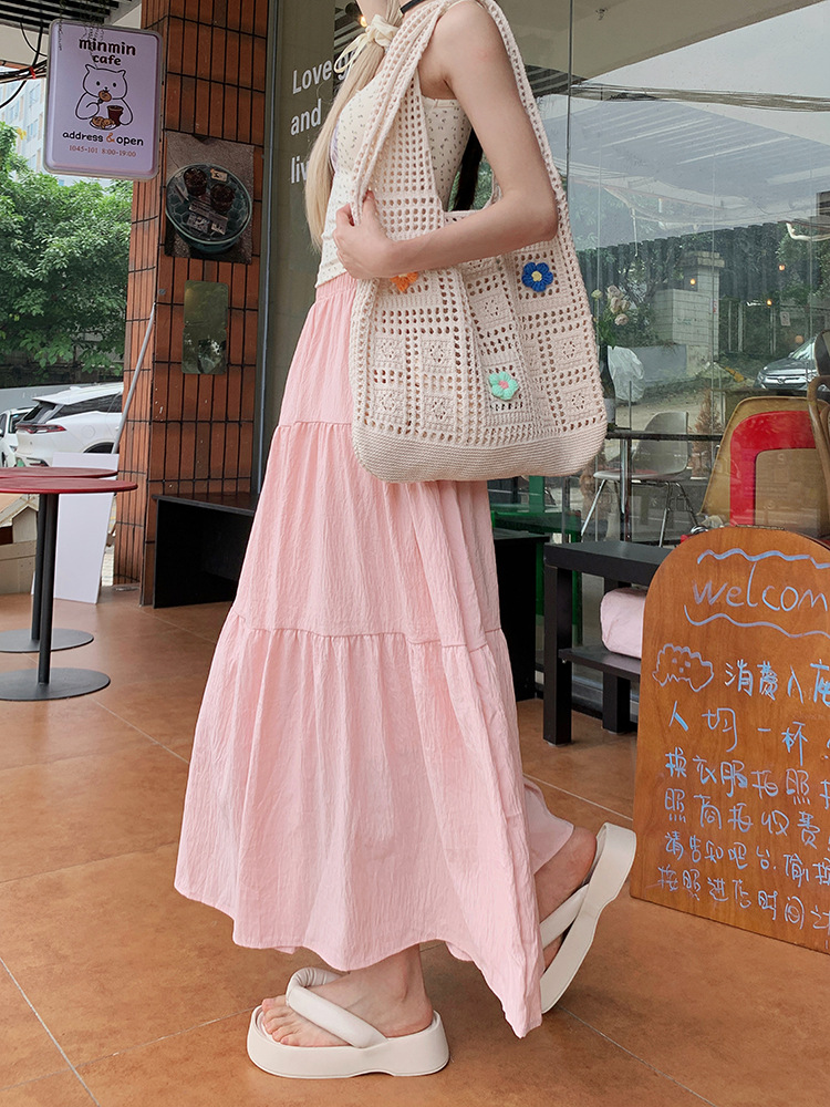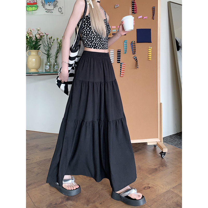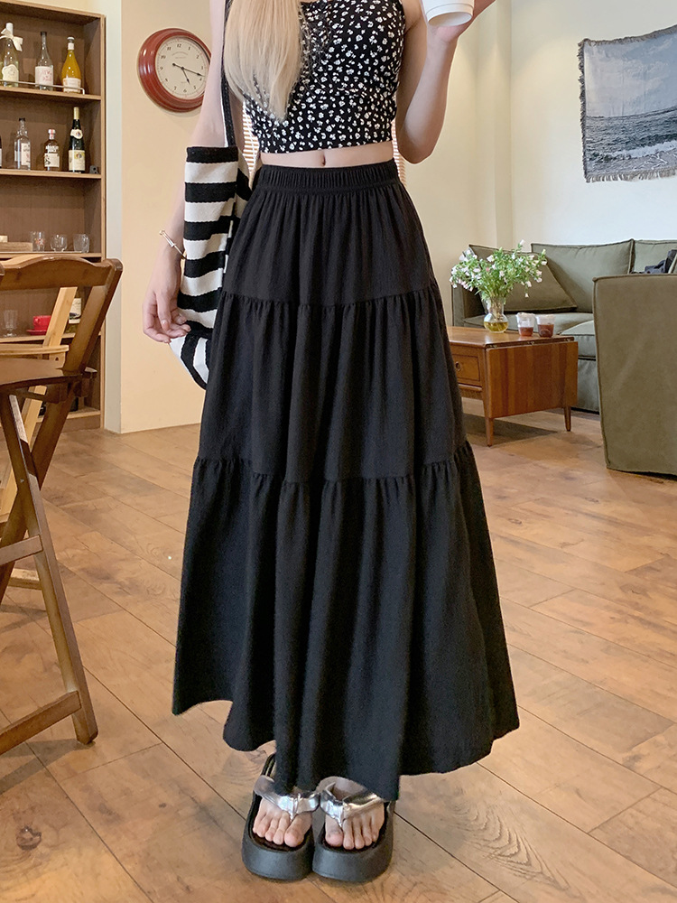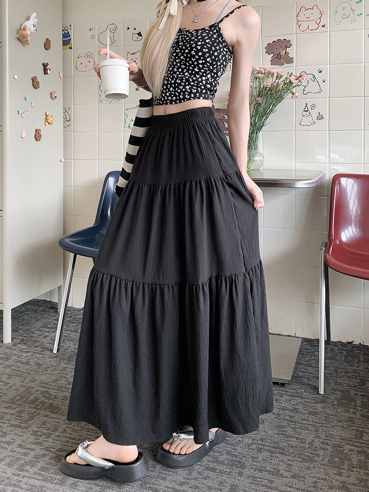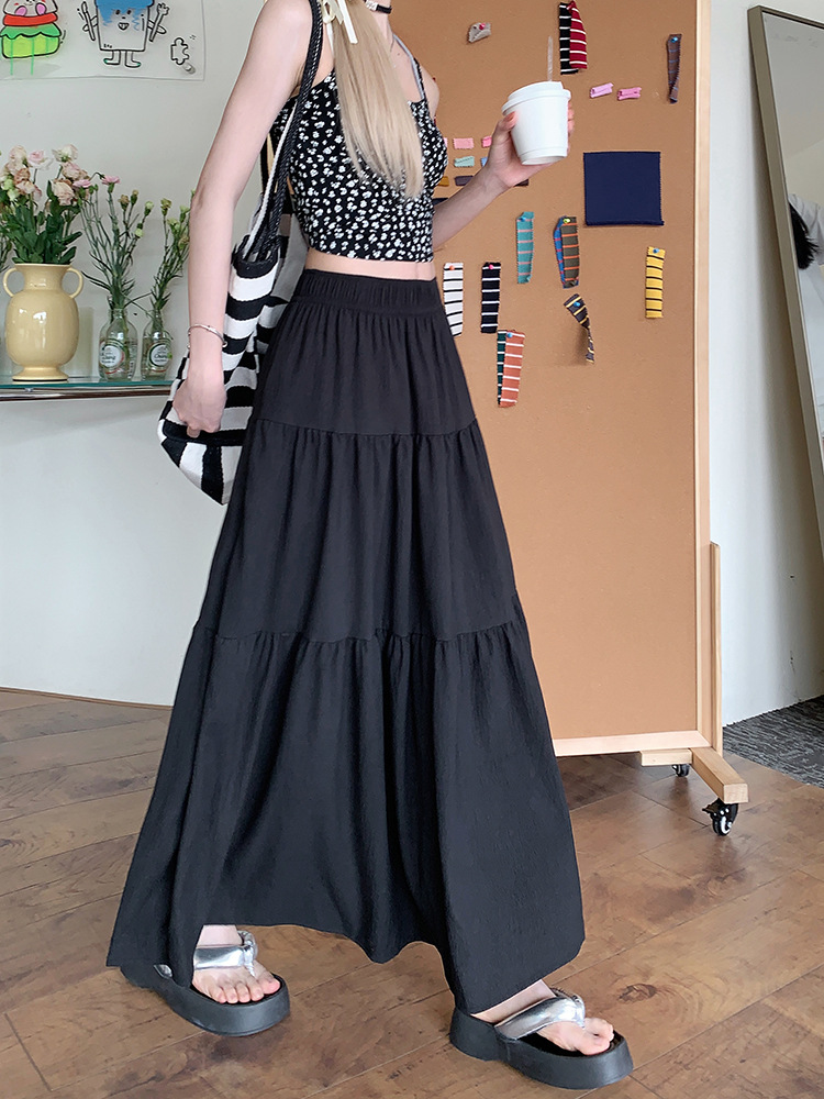 Белая юбка для торта Корейская нежная, высокая талия, тонкая, дикая юбка, эластичная талия, сладкая маленькая юбка среднего и длинная