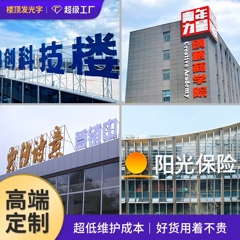 Световые буквы для высотных зданий, крупные буквы для навесных фасадов, акриловые вывески, объемные буквы из нержавеющей стали, гальваническое титановое золотое покрытие.