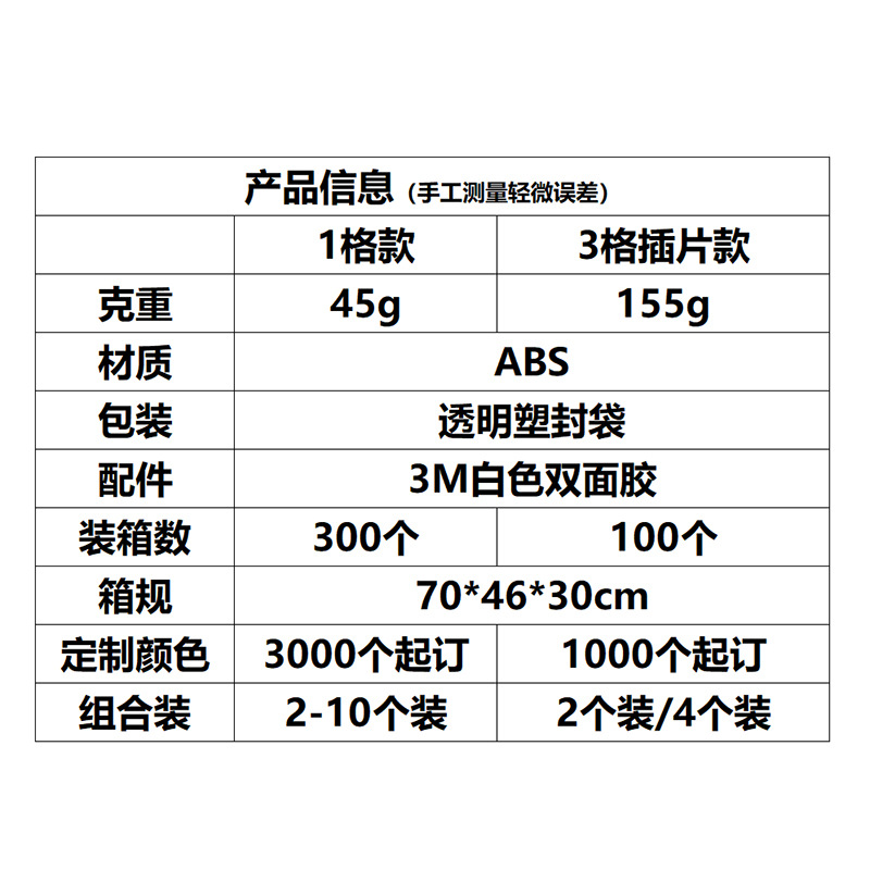1格收纳盒可做多个组合装,包装信息如下