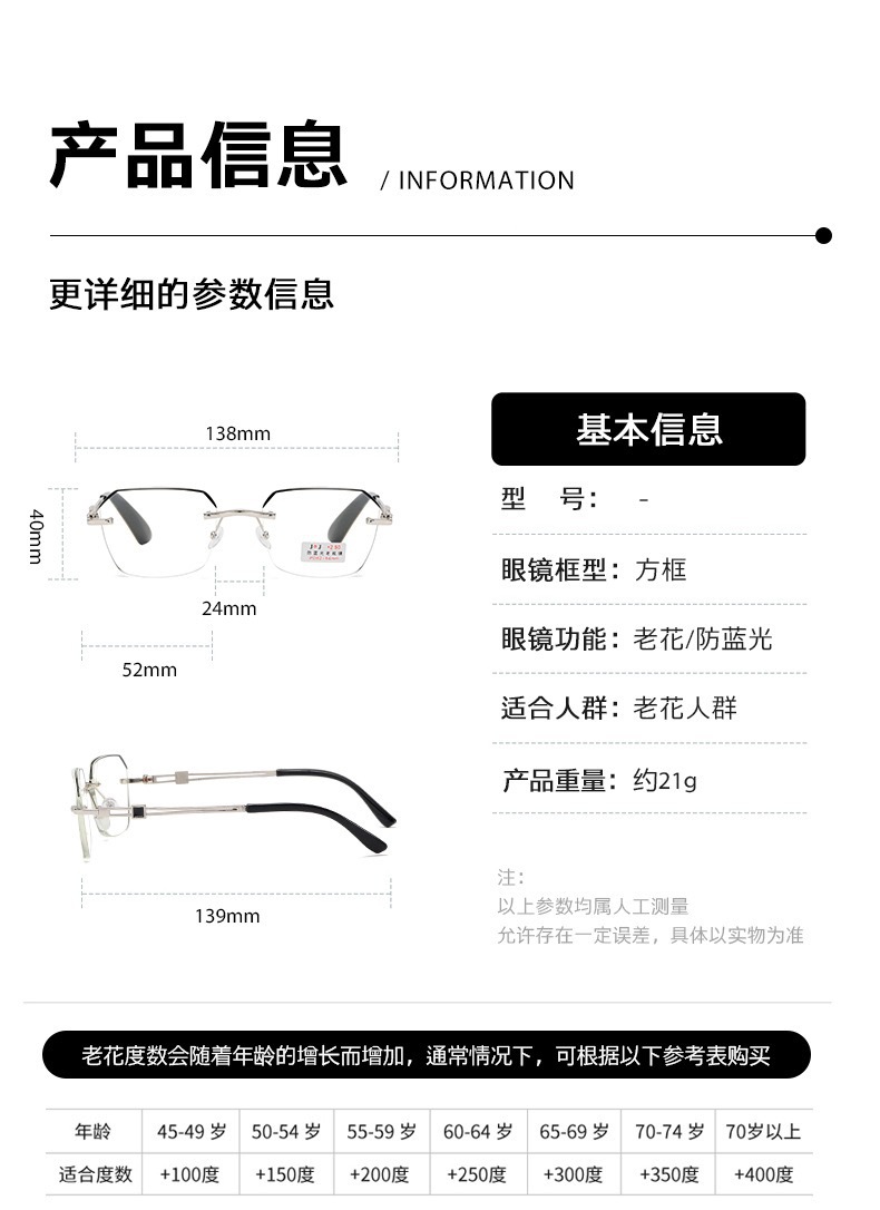 Новый безрамный пограничный вырезать Blu-ray очки для чтения