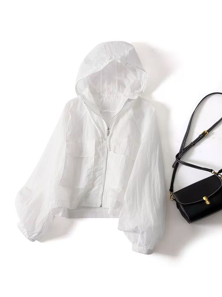 Короткая повседневная солнцезащитная одежда с капюшоном для женщин летом новый тонкий и дышащий большой карманный модный пальто с длинными рукавами
