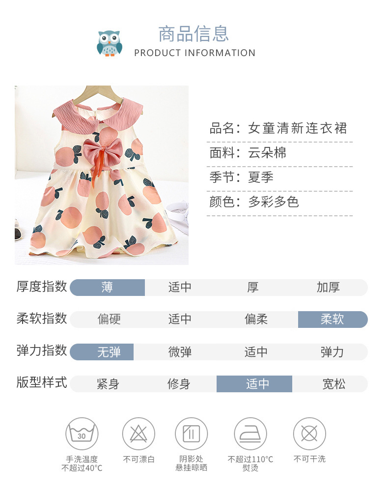 2024 новое летнее платье облако хлопчатобумажная юбка Принцесса без рукавов девушка бант милая юбка дышащая и удобная