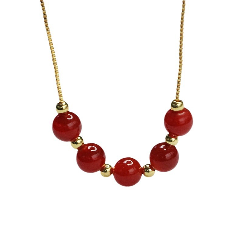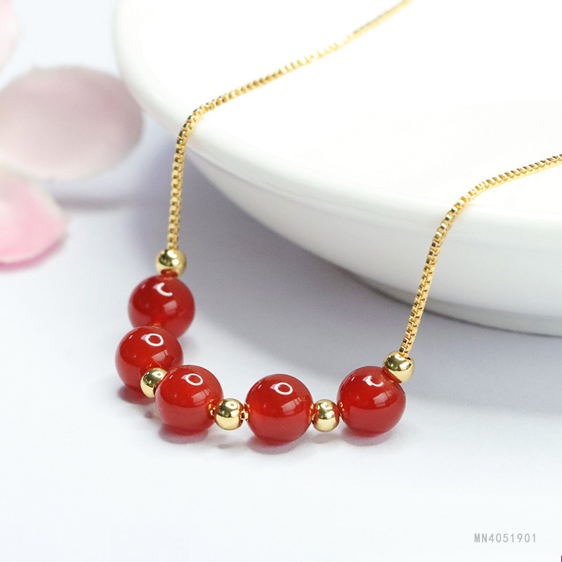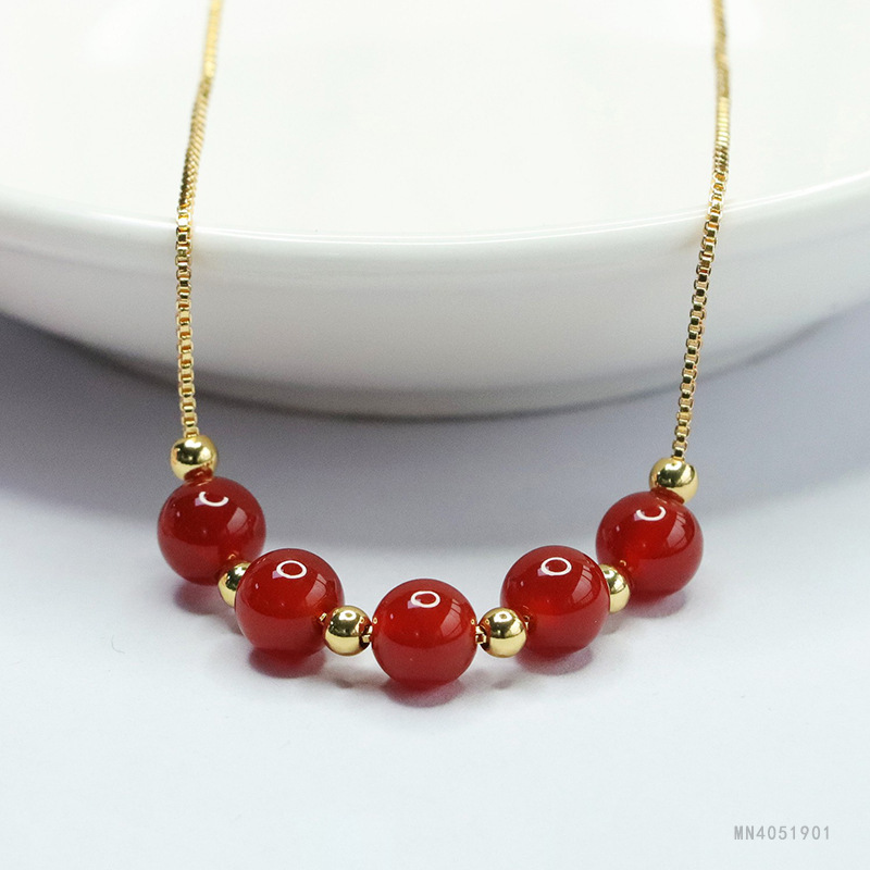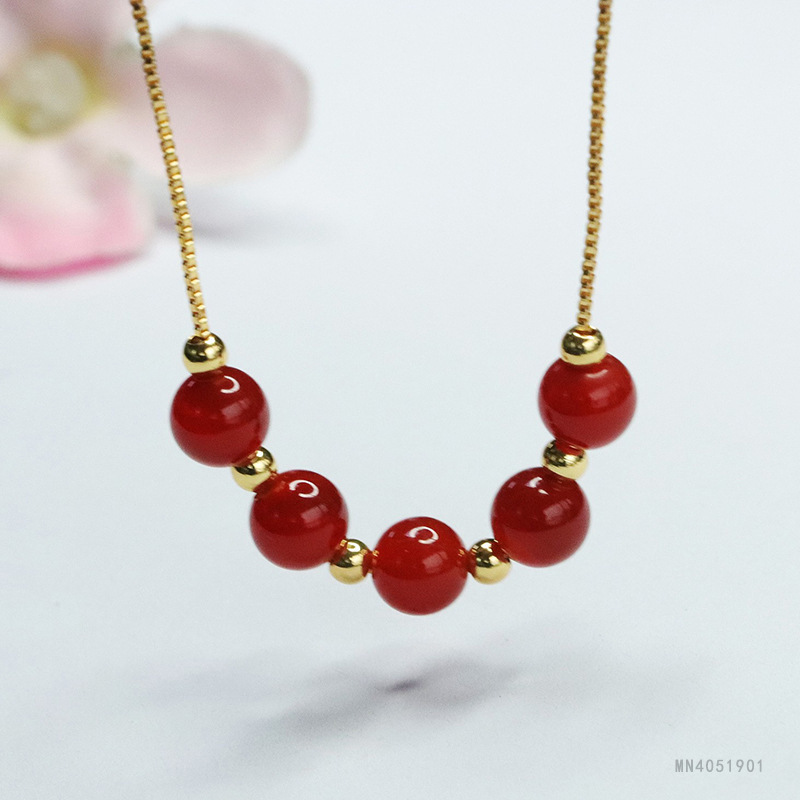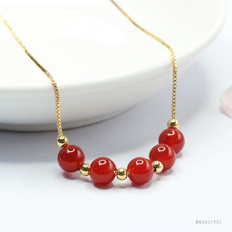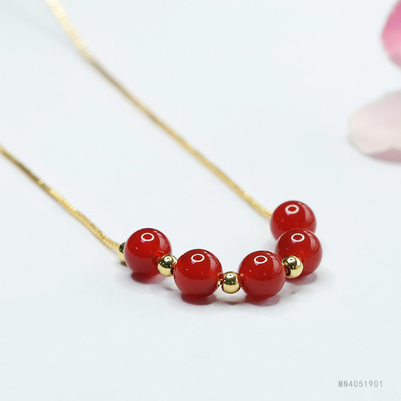 Ожерелье с пятью бусинами и улыбкой из красного агата (МН4051901)