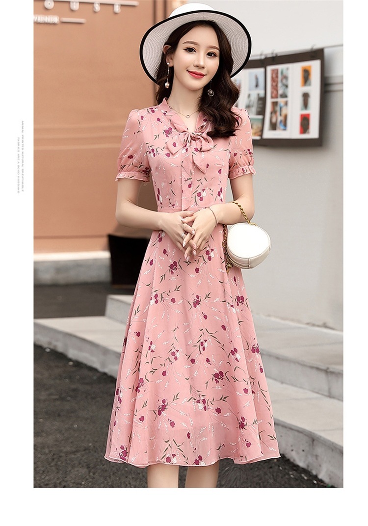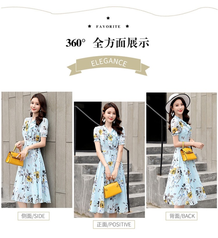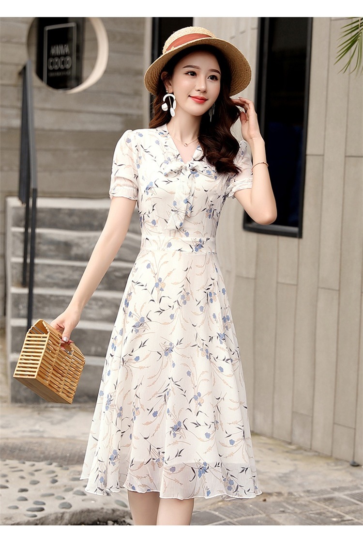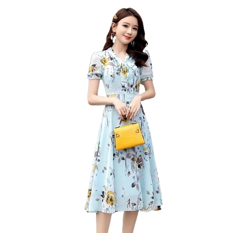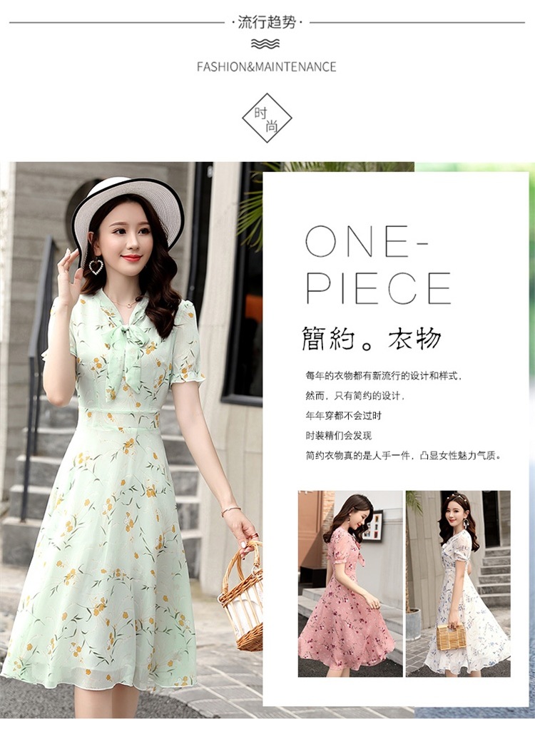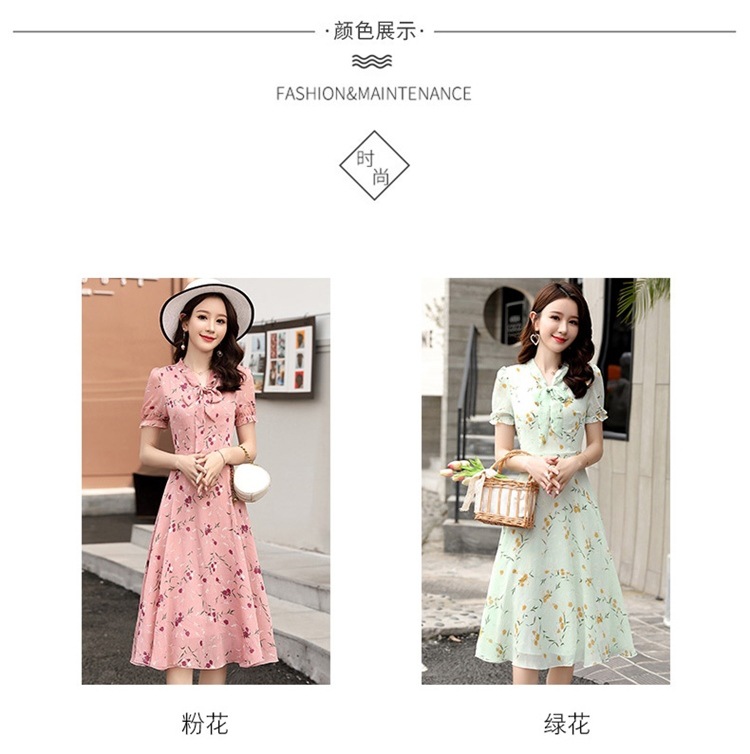 Трансграничная внешняя торговля маленький цветочный бант платье фея летняя французская ниша с коротким рукавом принт тонкая юбка