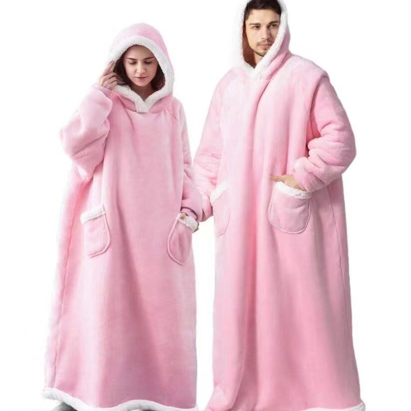 1.8米圣诞睡衣睡袍女睡袍法兰绒加长竖口袋 懒人毯