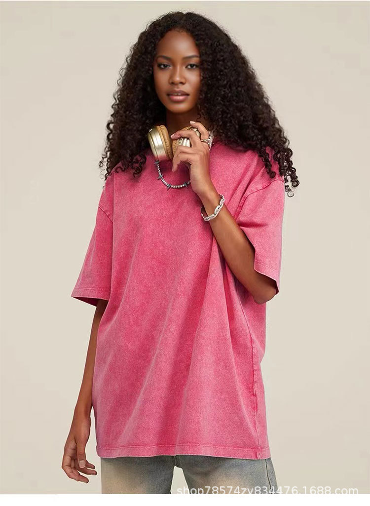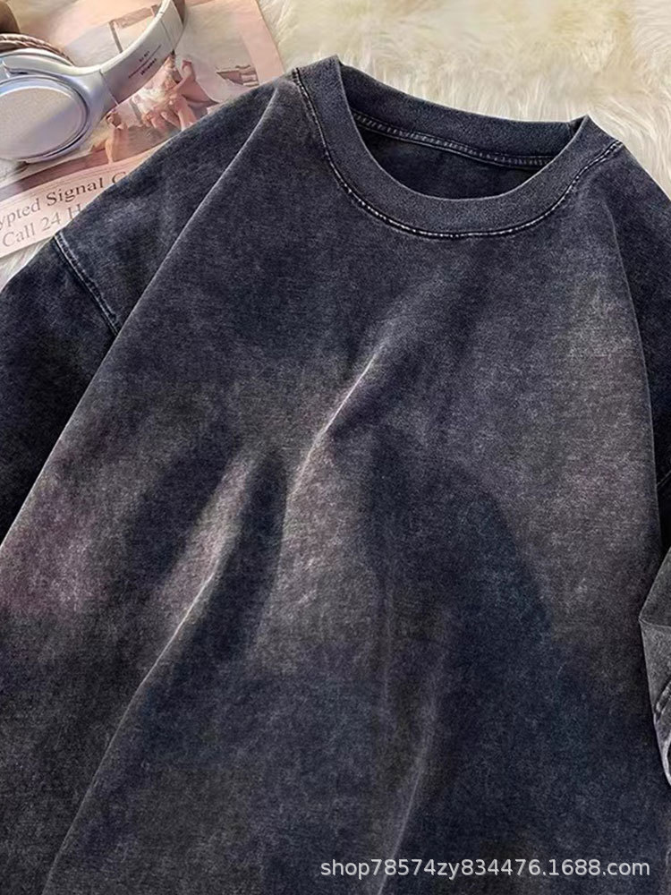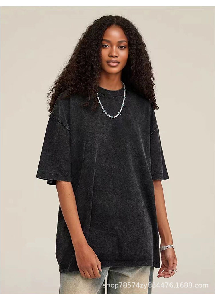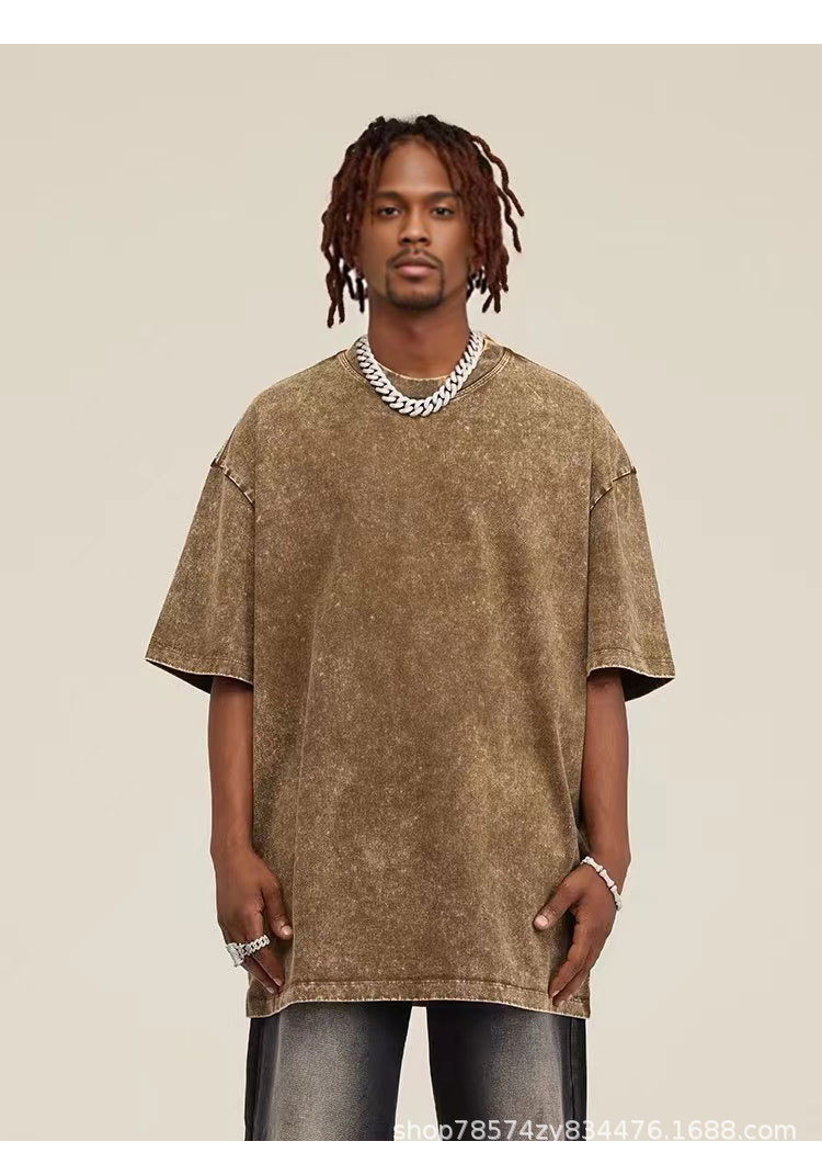 Трансграничный сплошной цвет футболки с короткими рукавами мужской 2024 новый продукт старый тренд с короткими рукавами оптом тяжелые стирание футболки