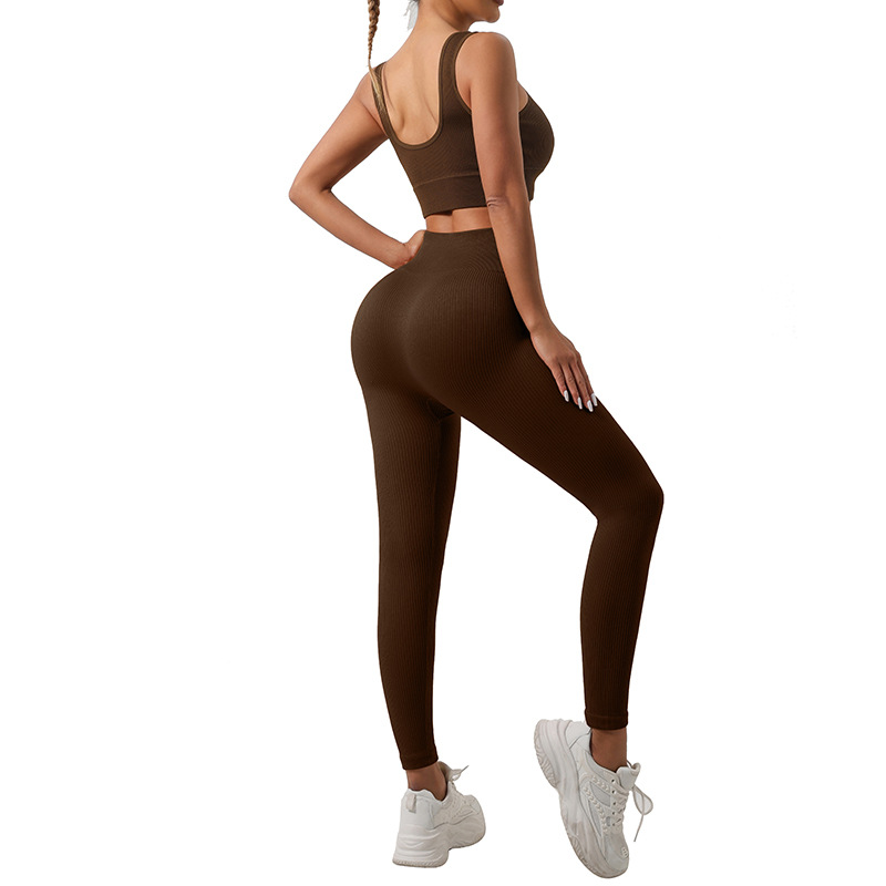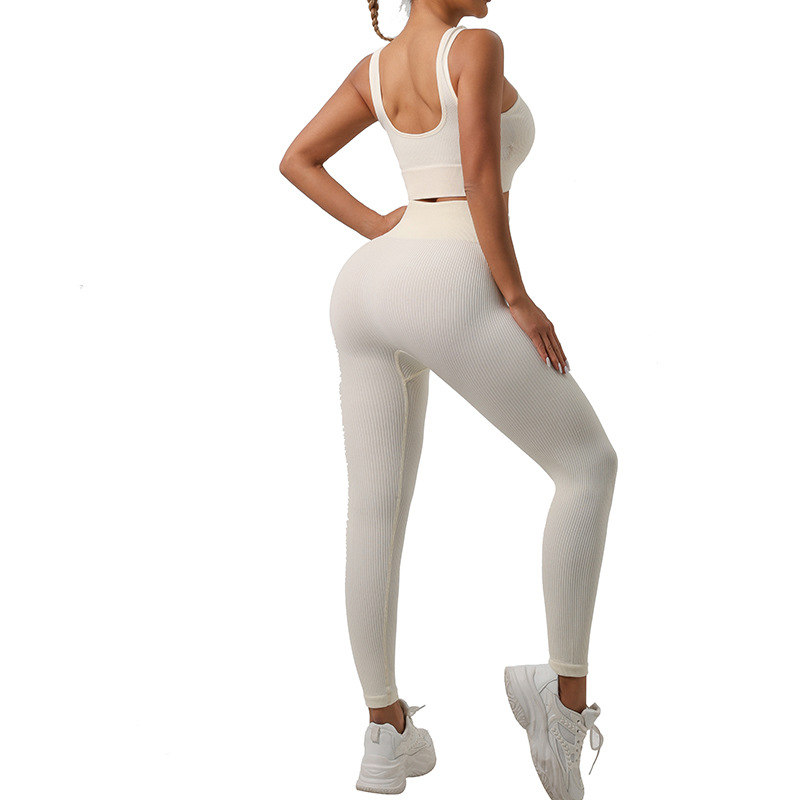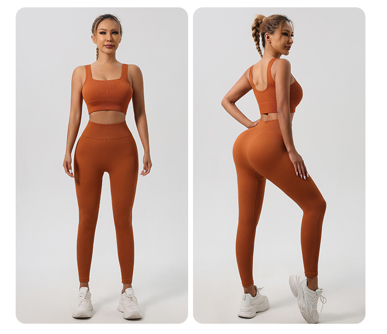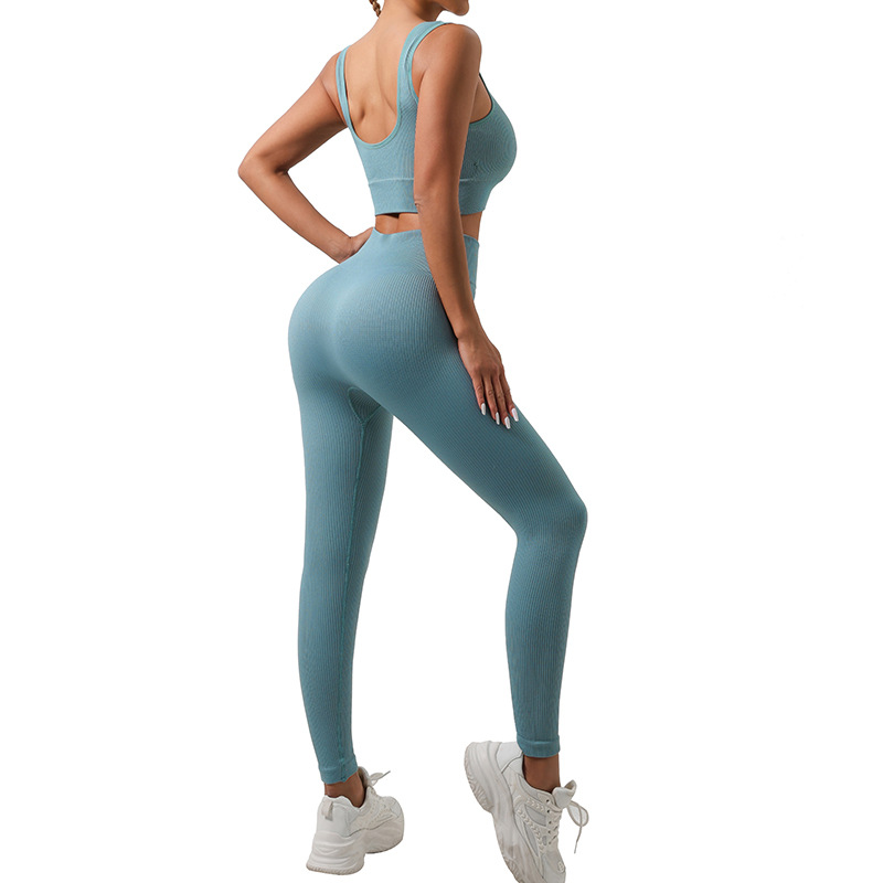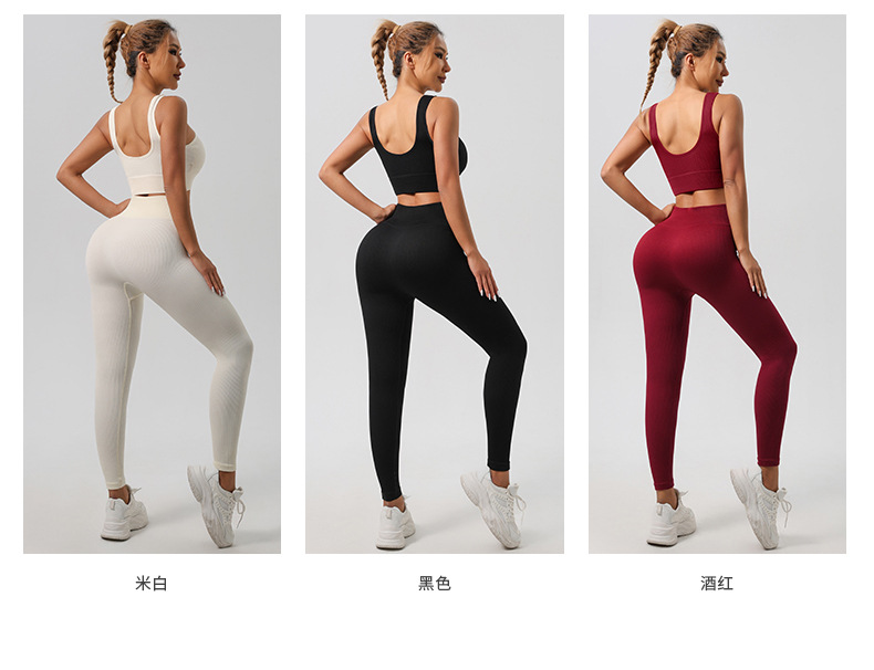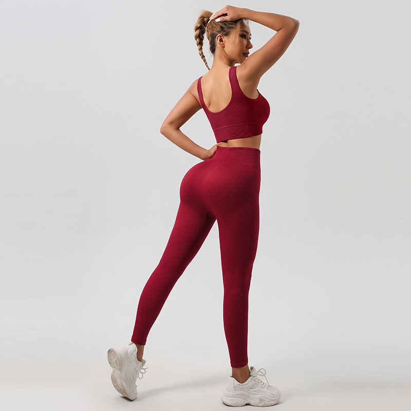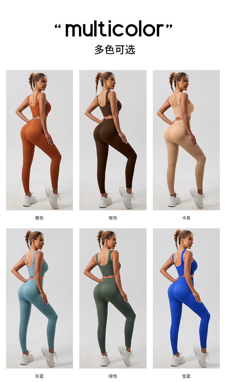 Трансграничный бесшовный резьбовой костюм для йоги спортивный фитнес-бюстгальтер для ягодиц быстрого сушки фитнес-брюки для йоги набор для женщин