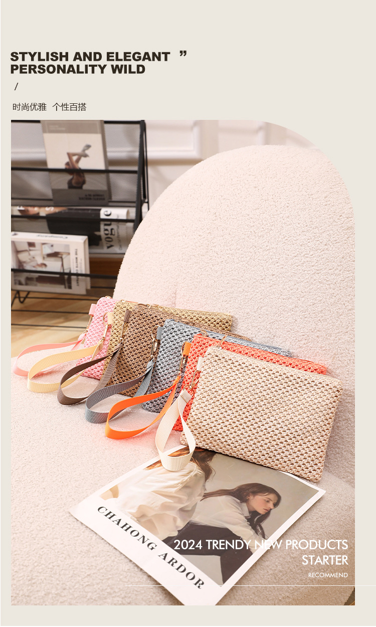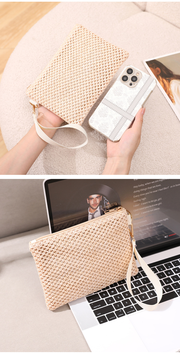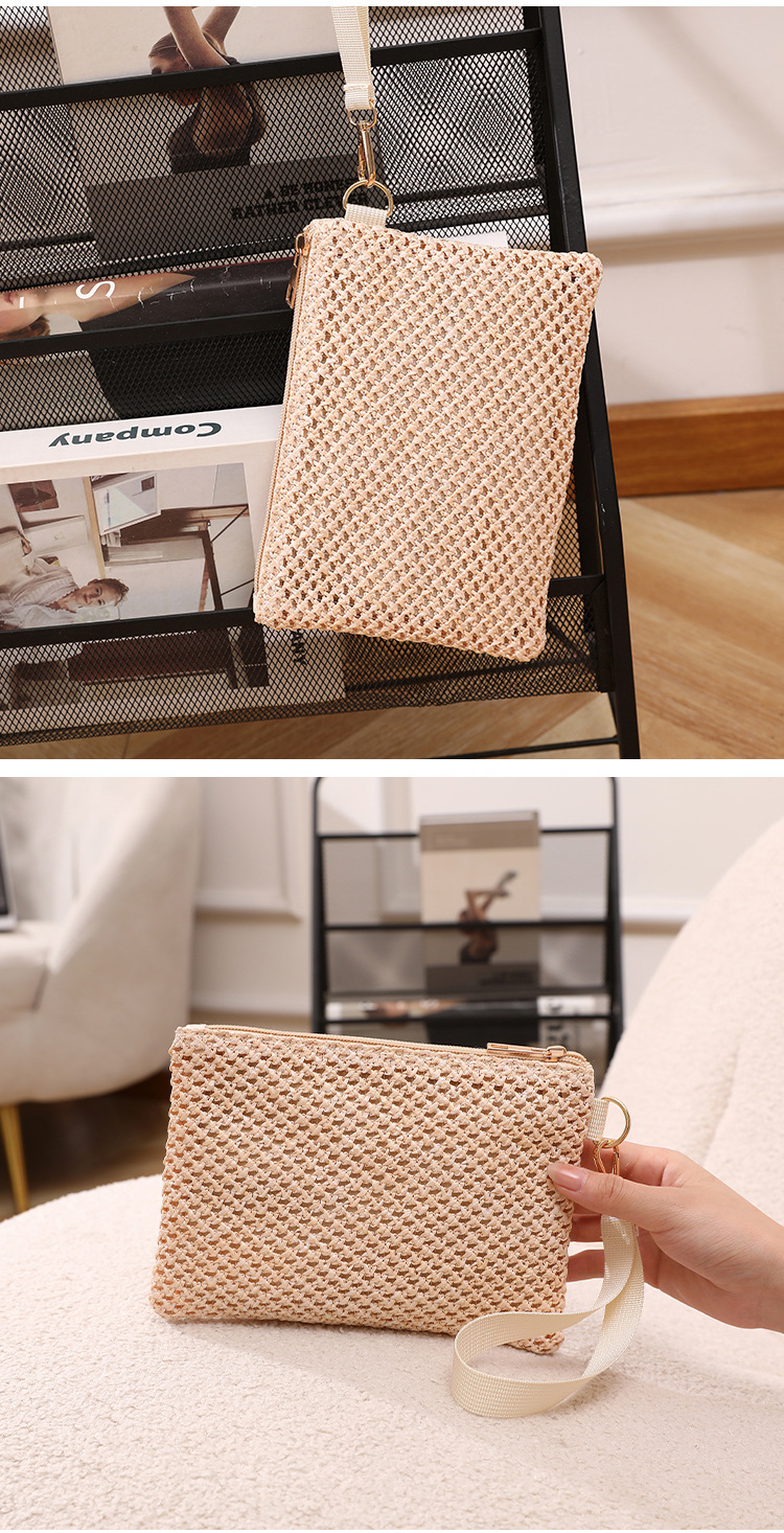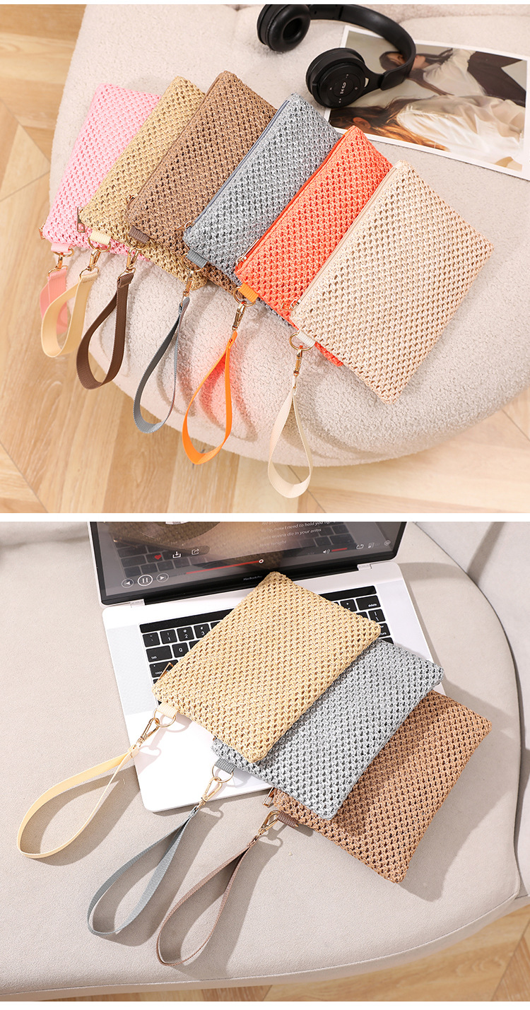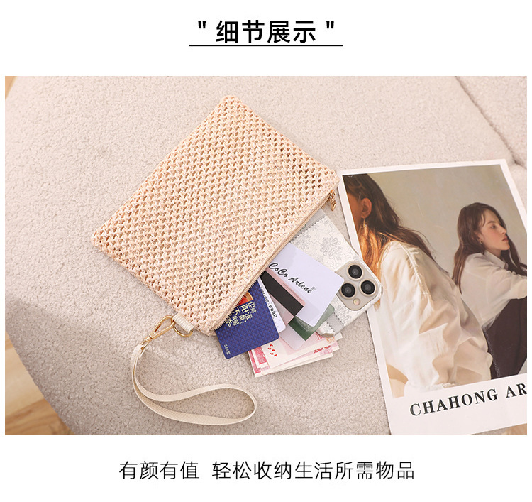 Соломенная сумка 2024 новый новый женский трансграничный полый соломенный пляжный клатк сумка на запястье сумка для мобильного телефона денежная сумка