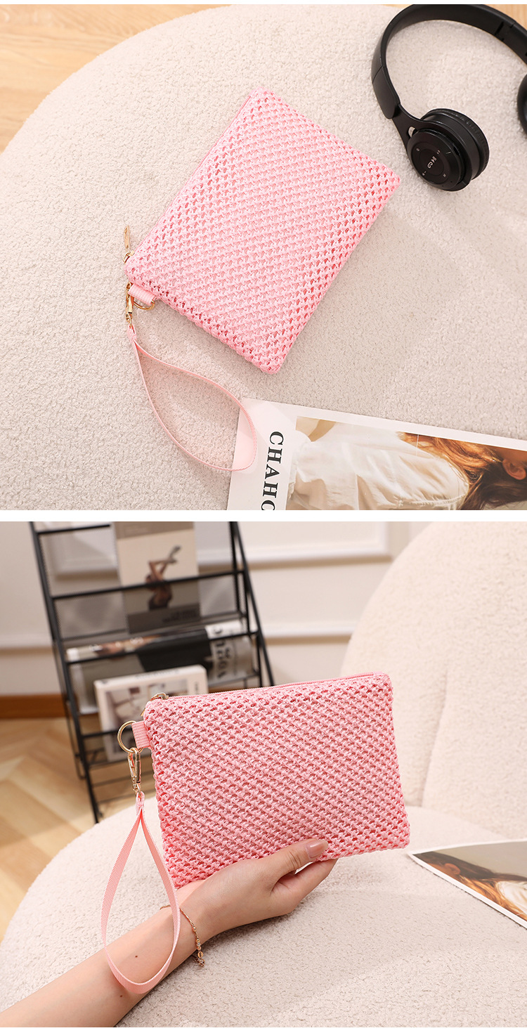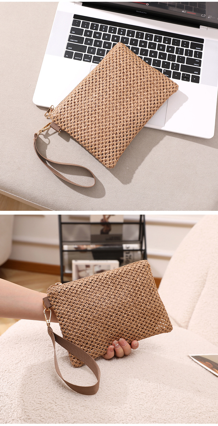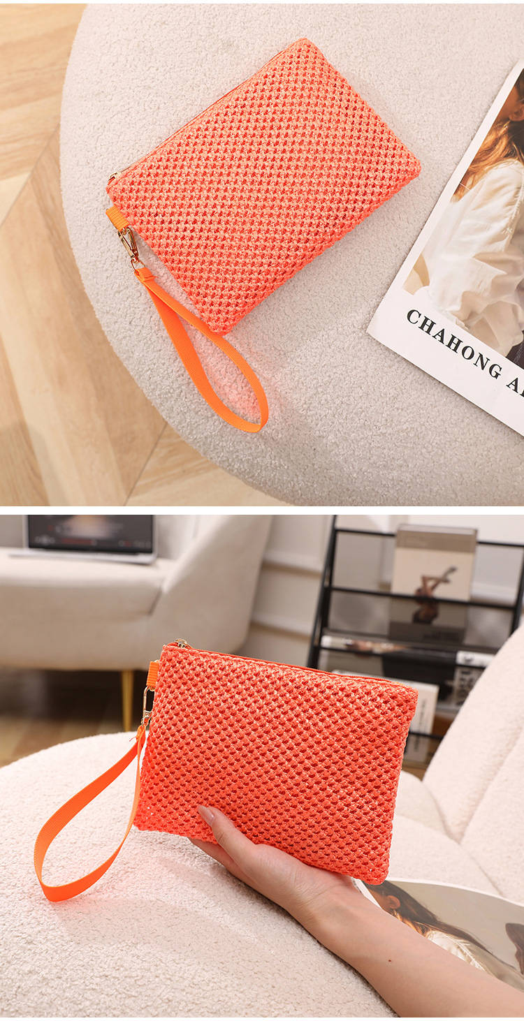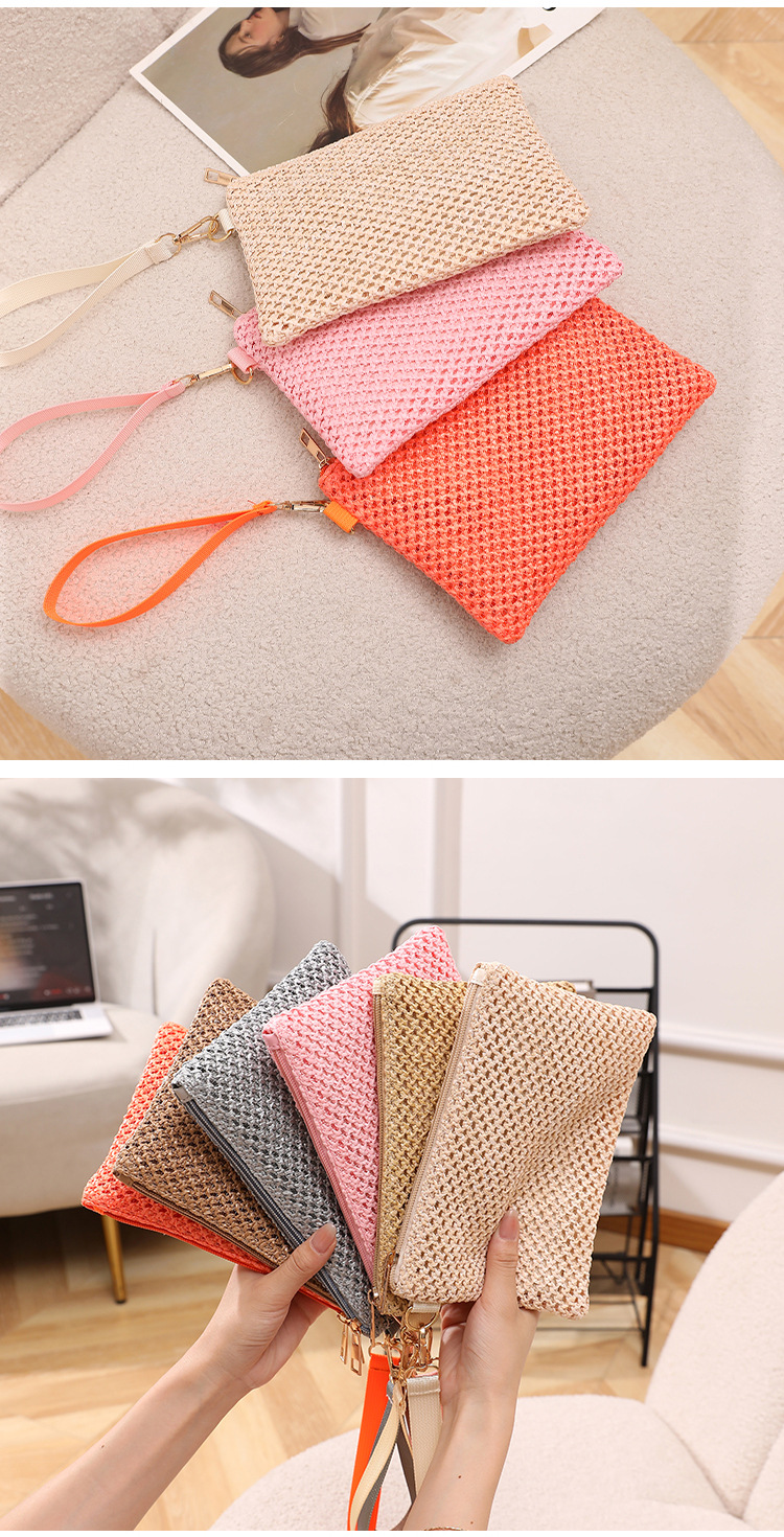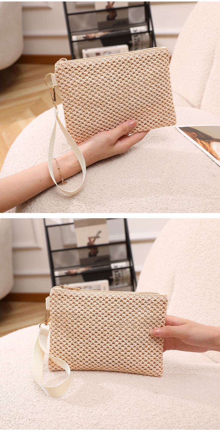 Соломенная сумка 2024 новый новый женский трансграничный полый соломенный пляжный клатк сумка на запястье сумка для мобильного телефона денежная сумка