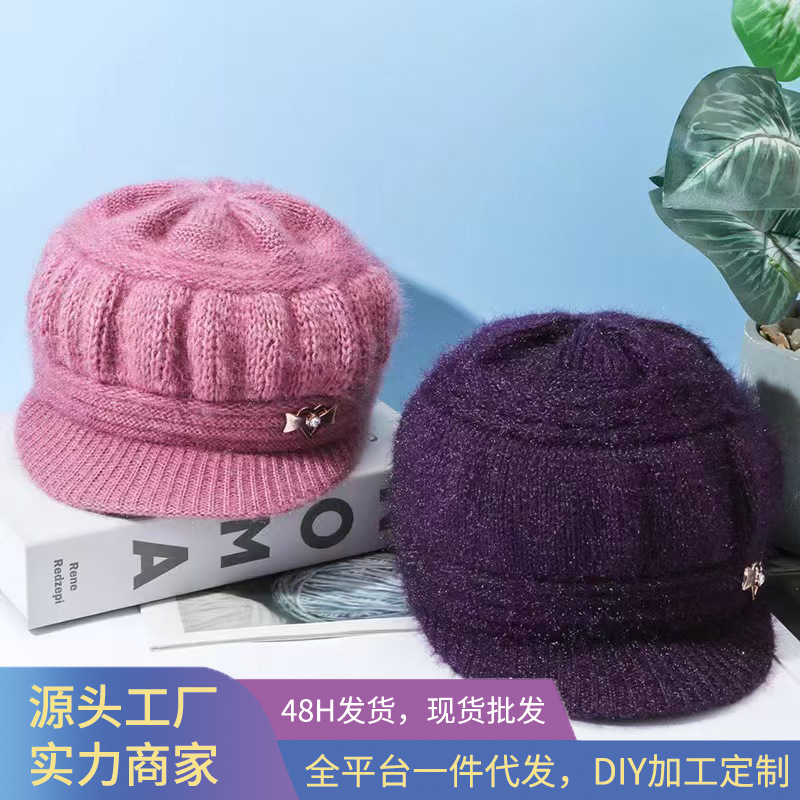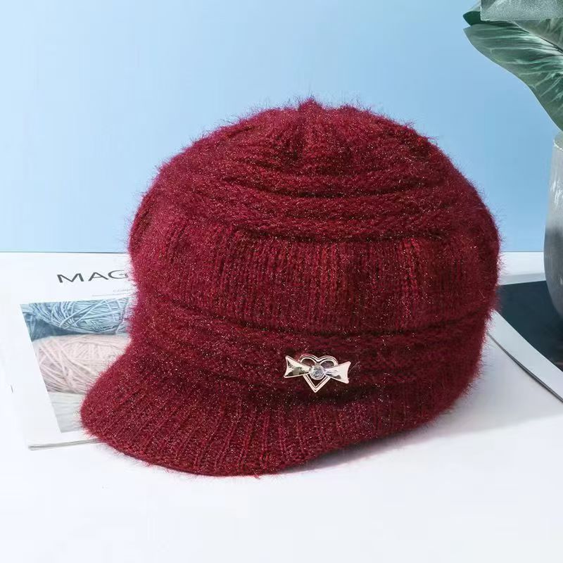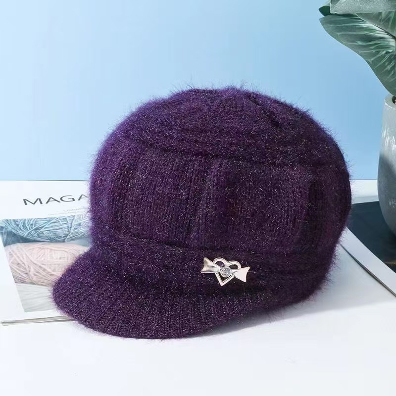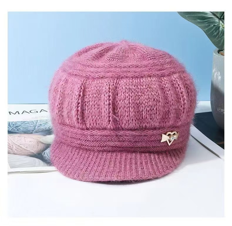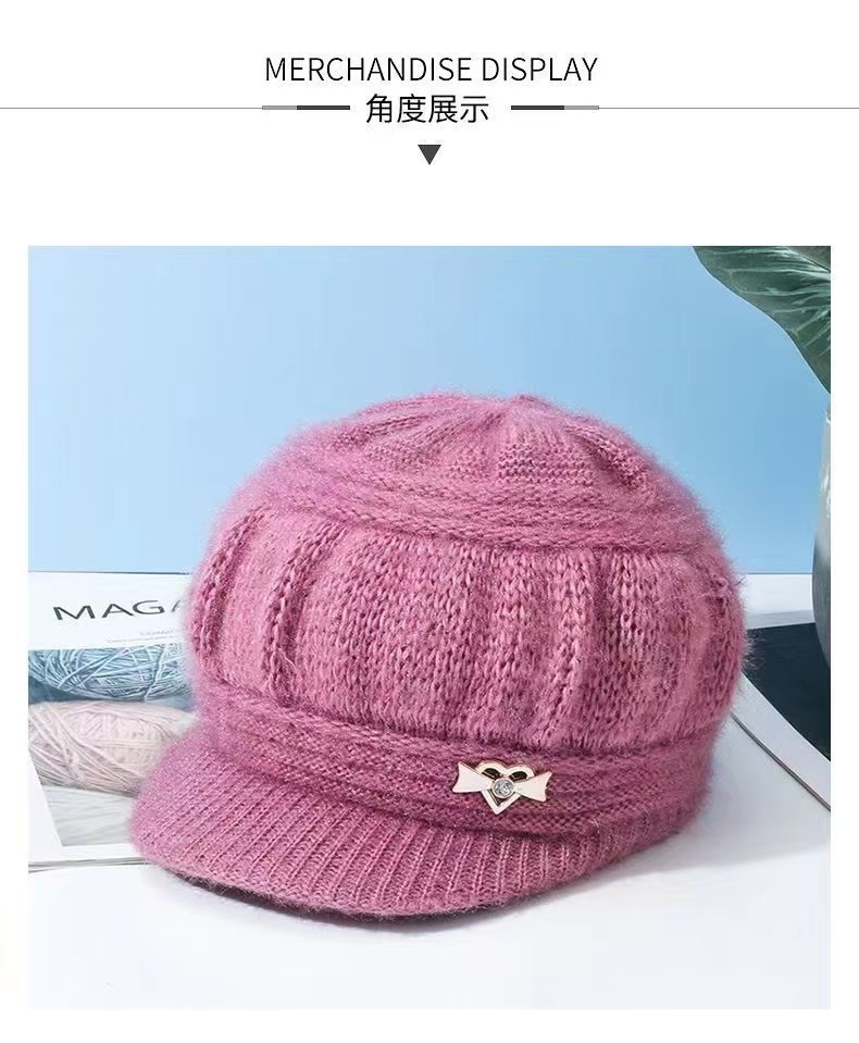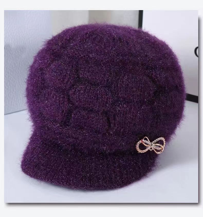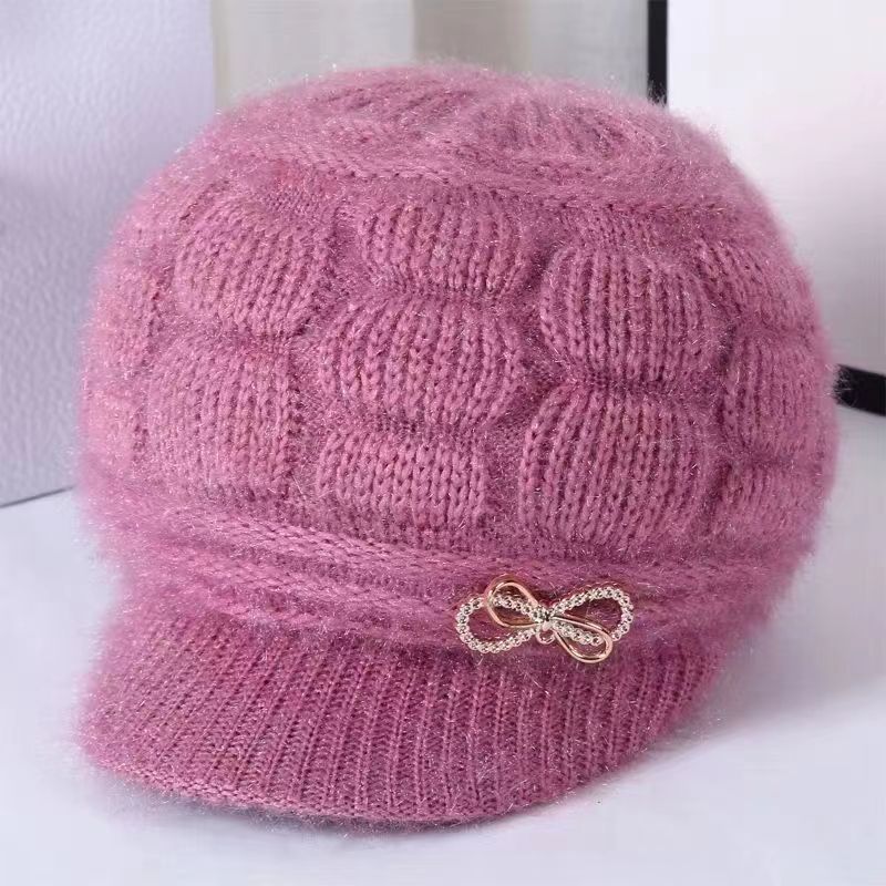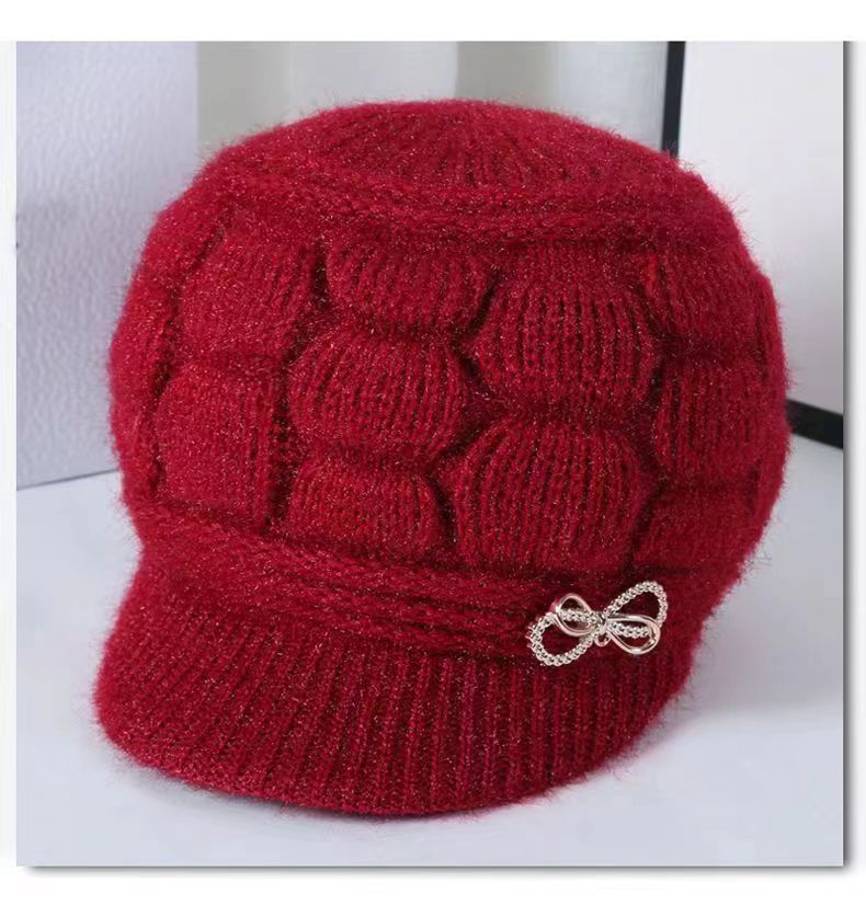 Шапка для пожилых женщин на осень и зиму, вязаная повседневная модная шапка для мам, утепленная шерстяная шапка на флисовой подкладке для женщин среднего и старшего возраста с круглым верхом.