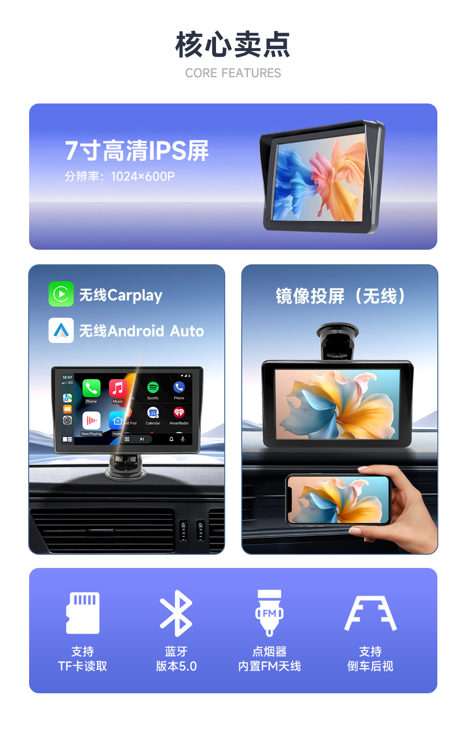 7 дюймов портативный PND автомобиль MP5 HD изображения заднего хода беспроводной Carplay автомобиль Bluetooth радио