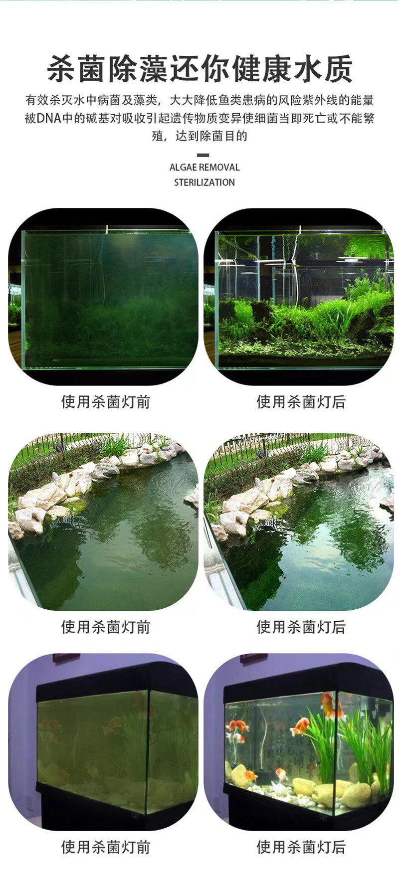Бактерицидный король Chuanglang Однотрубная двухтрубная бактерицидная лампа для аквариума УФ УФ кои рыбный пруд для дайвинга и дезинфекции водорослей