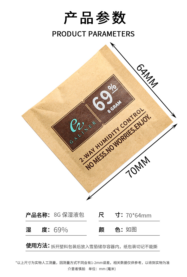 Сигарная увлажняющая сумка для контроля влажности Сигарная увлажняющая сумка 69% Увлажняющая таблетка Увлажняющая жидкость Сигарная коробка Универсальная сигарная увлажняющая сумка