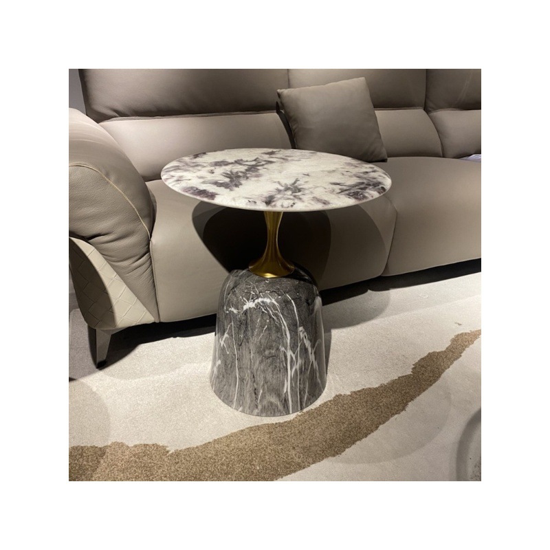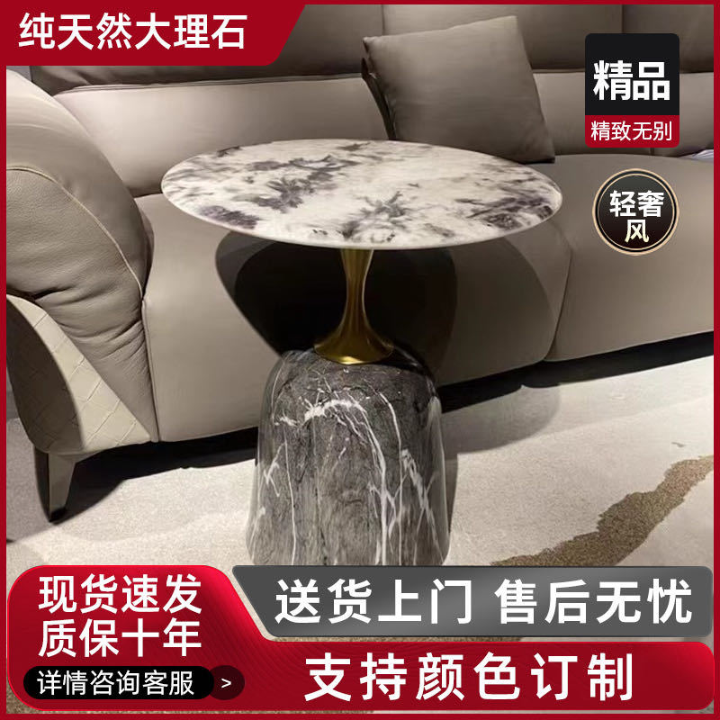 Круглый журнальный столик из мрамора, простой современный приставной столик для дивана, круглый стол для гостиной, небольшой журнальный столик, угловой столик, круглая форма в итальянском стиле.