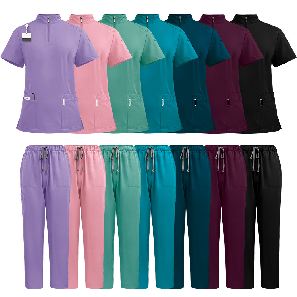 Воротник с короткими рукавами упругий быстродушный доктор больничная рабочая одежда униформа из двух частей прямые брюки для салона красоты