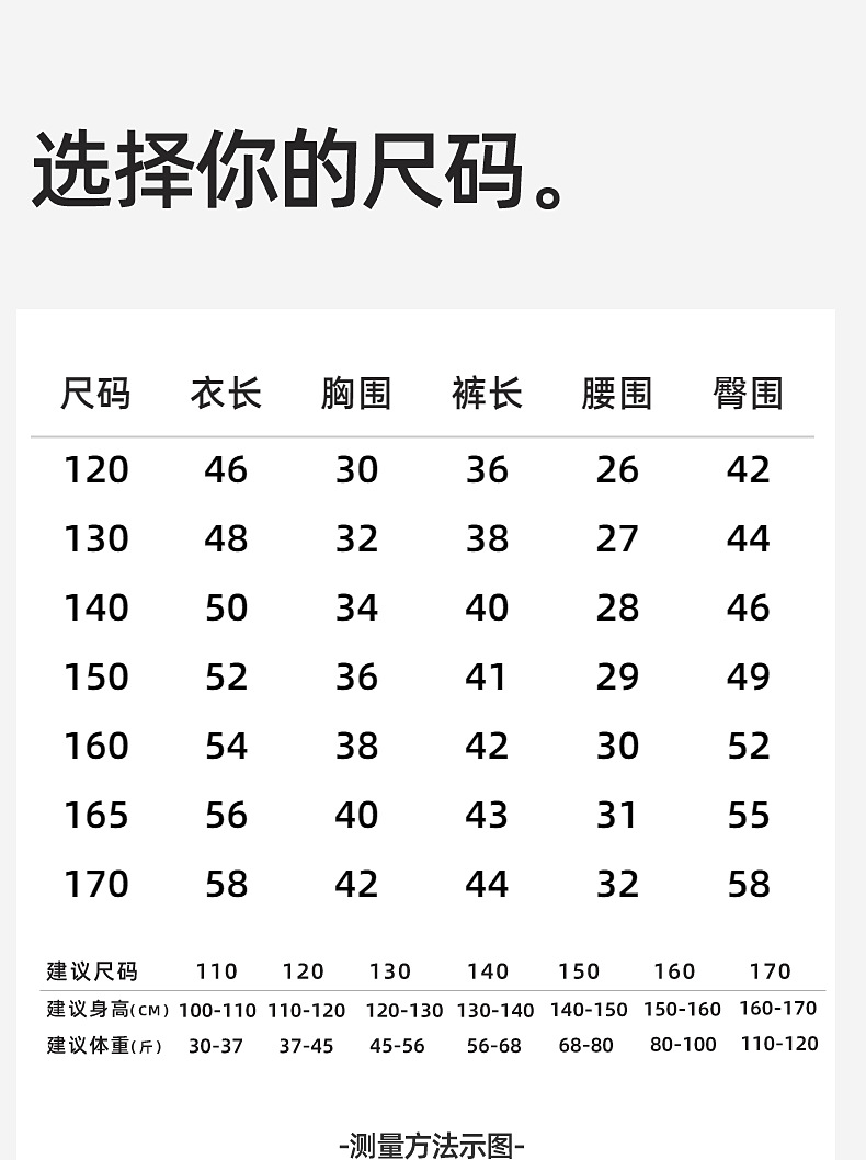 120cm; 130cm; 140cm; 150cm; 160cm; 170cm
