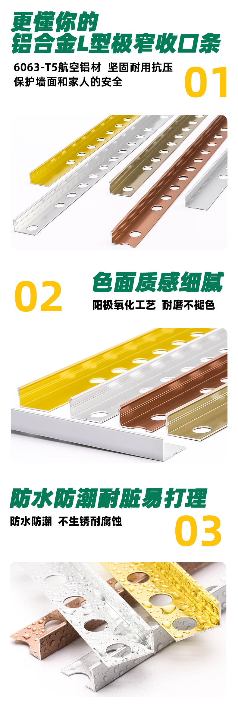 7-образная угловая отделка для плитки в американском стиле матового золота, чрезвычайно узкая кромочная планка, кромочная планка из алюминиевого сплава, L-образная угловая планка.
