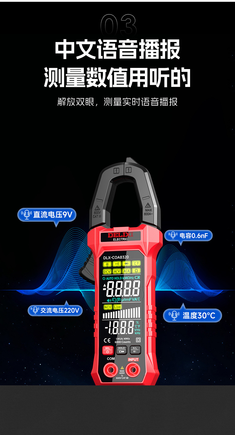 特点:中文语音播报 6000计数 NCV测量