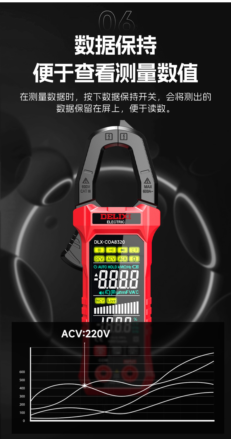 德力西2024新品高精度钳形表多功能交流钳型电流表电工维修智能数字万用表