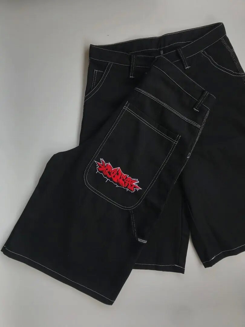 Мужские джинсовые шорты в стиле Y2K, летние, свободного кроя, с вышивкой в стиле хип-хоп, ретро, готика, Harajuku.