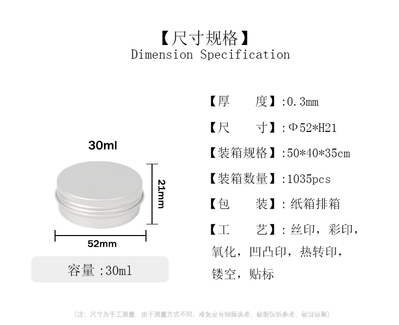 15g30g50g60g100g мульти-технические характеристики резьбовая круглая алюминиевая коробка металлическая коробка для хранения коробки для герметизации коробки для волос