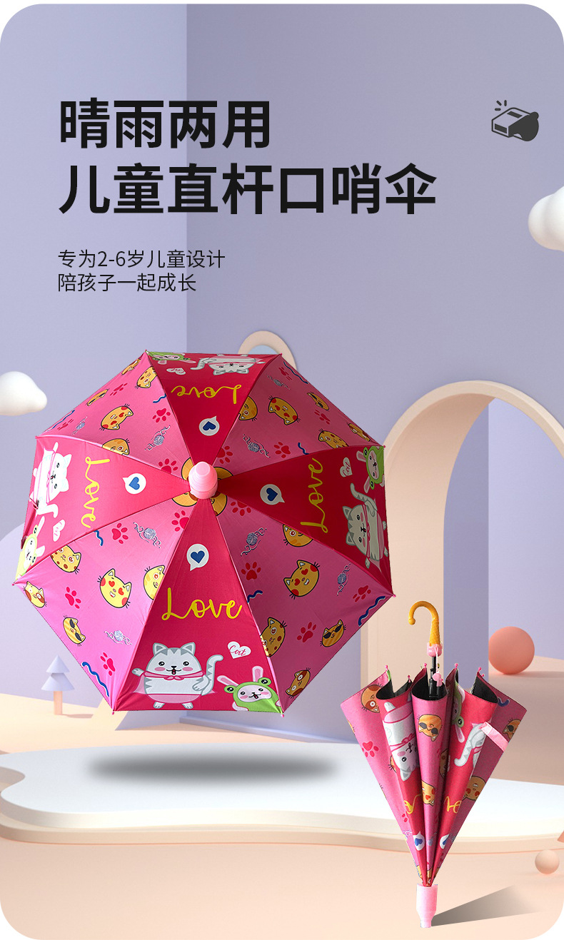Новый стиль детский милый зонт для учеников начальной школы с длинной ручкой прямой свист зонт для мальчиков и девочек в школе виниловый солнцезащитный зонт