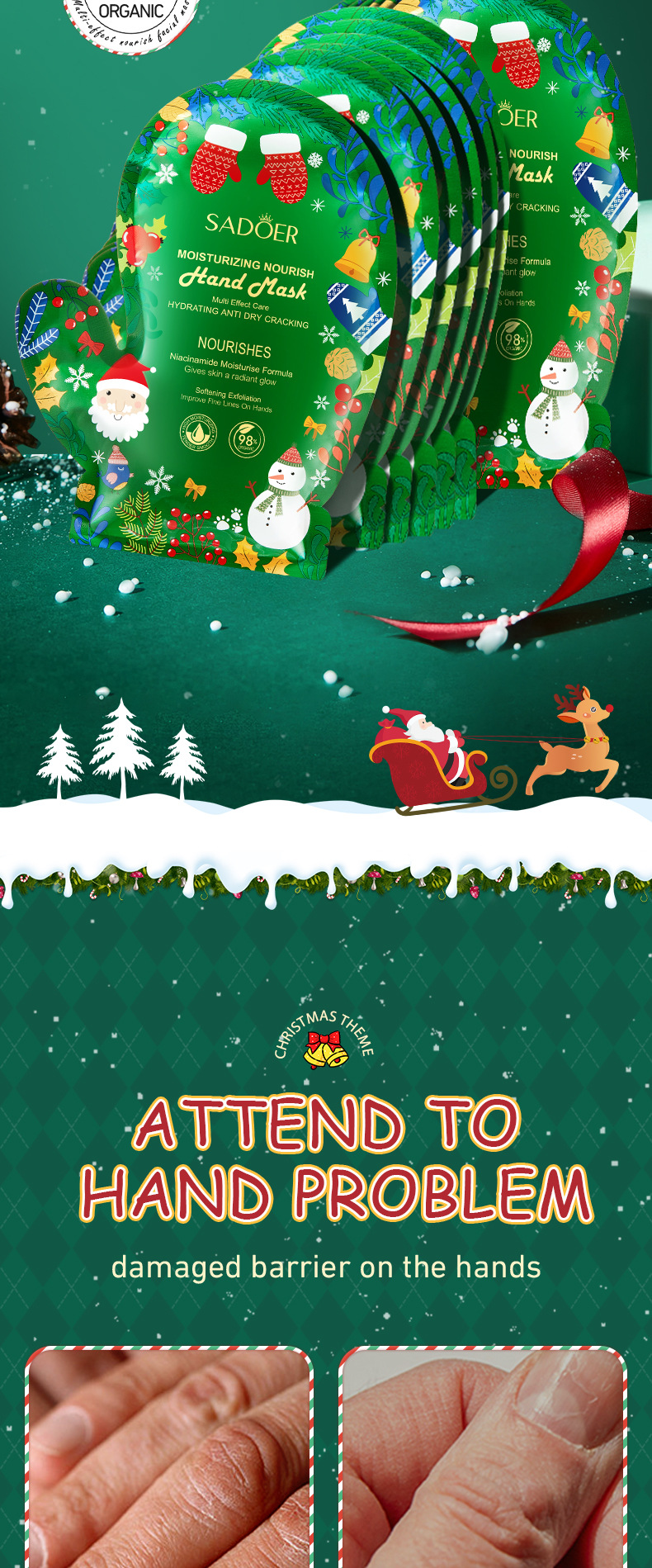 Полная английская рождественская маска для рук и ног с ниацинамидом SADOER Питательная, нежная и бережная маска для ног Трансграничная внешняя торговля Оптовая торговля