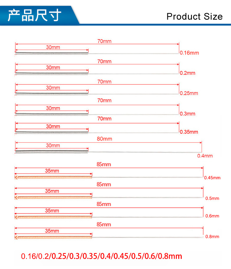 0,16 мм, 5 шт., серебро, с трубкой; 0,2 мм, 5 шт., серебро, с трубкой; 0,25 мм, 5 шт., серебро, с трубкой; 0,3 мм, 5 шт., серебро, с трубкой; 0,35 мм, 5 шт., серебро, с трубкой; 0,4 мм, 5 шт., серебро, с трубкой; 0,45 мм, 5 шт., золото с трубкой; 0,5 мм, 5 штук в золотой трубке.; Золотая трубка диаметром 0,6 мм, 5 шт.; Золотая трубка диаметром 0,8 мм, 5 шт.; 0,16 мм, 10 штук в серебряной трубке.; 0,2 мм, 10 штук в серебряной трубке.; 0,25 мм, 10 штук в серебряной трубке.; 0,3 мм, 10 штук в серебряной трубке.; 0,35 мм, 10 штук в серебряной трубке.; 0,4 мм, 10 штук в серебряной трубке.; 0,45 мм, 10 штук в золотой трубке.; 0,5 мм, 10 штук в золотой трубке.; 0,6 мм, 10 штук в золотой трубке.; 0,8 мм, 10 штук в золотой трубке.; В ассортименте 10 штук (0,16-0,8 мм, по 1 шт.) с трубкой; 5 штук (0,16+0,2+0,25+0,35+0,4) с трубкой; Труба с заглушкой; 10 штук смешанных (0,2*2+0,25*2+0,3*2+0,35*2+0,4*2)
