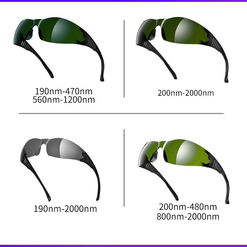200-2000 нм (TC-YJ-035/3502) темно-зеленый; 200-480/800-2000 нм (TC-YJ-035/3503) светло-зеленый; 190-470/560-1200 нм (TC-YJ-035/3512) темно-зеленый; 190-2000 нм (TC-YJ-035/3521) черный серый; TC-YJ-035 анти-синий свет UV400; TC-YJ-3522(GB38696); черная коробка на молнии