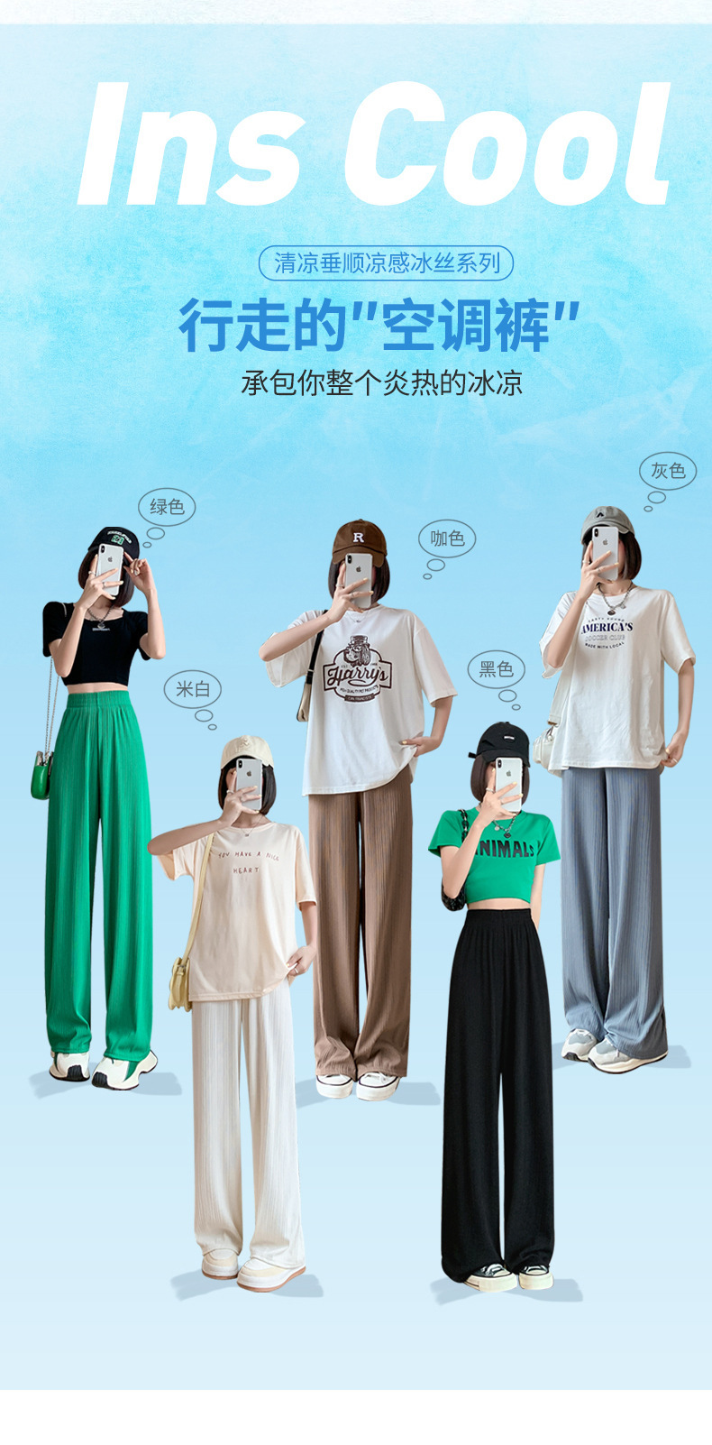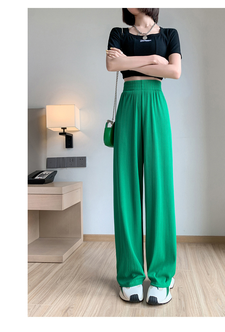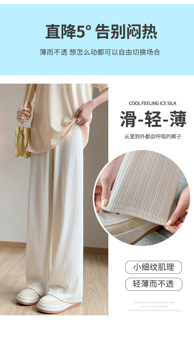 Широкие брюки H789 из ледяного шелка для женщин, тонкий шифон, с высокой талией, свободного прямого кроя, стройнящие, повседневные, в пол, для лета.