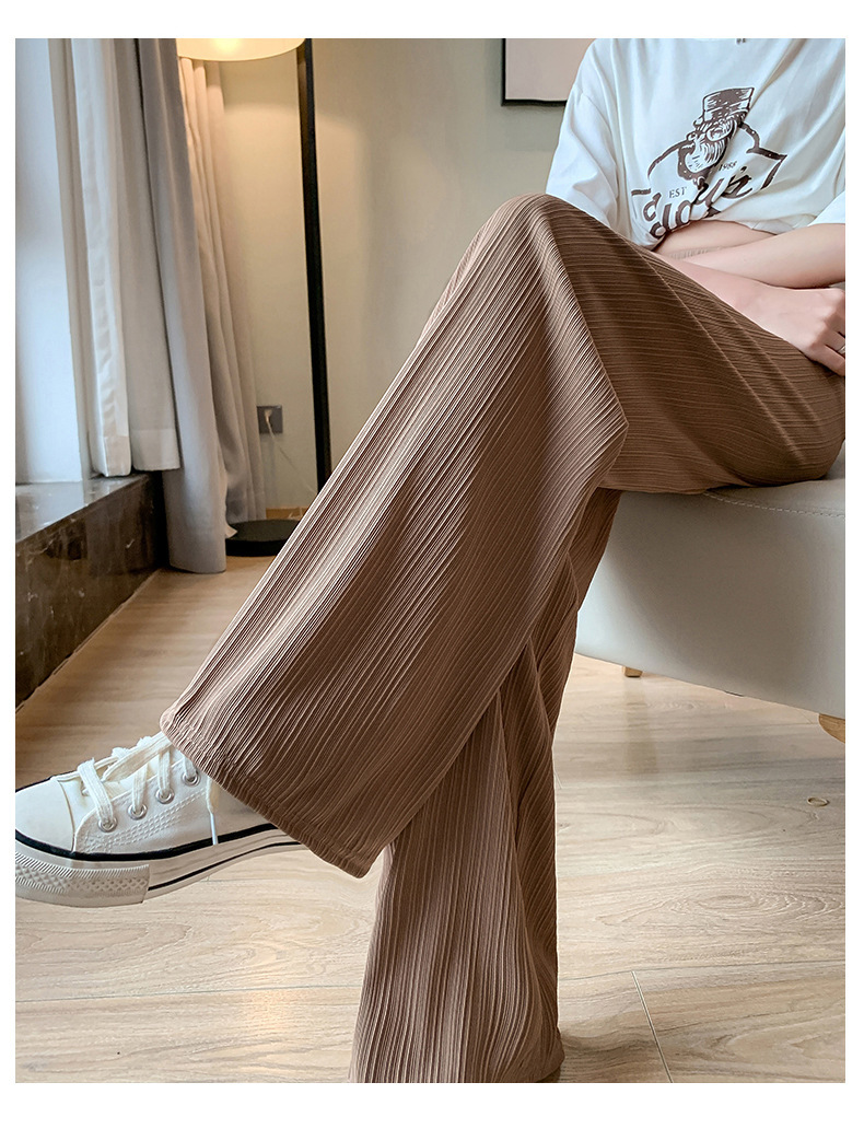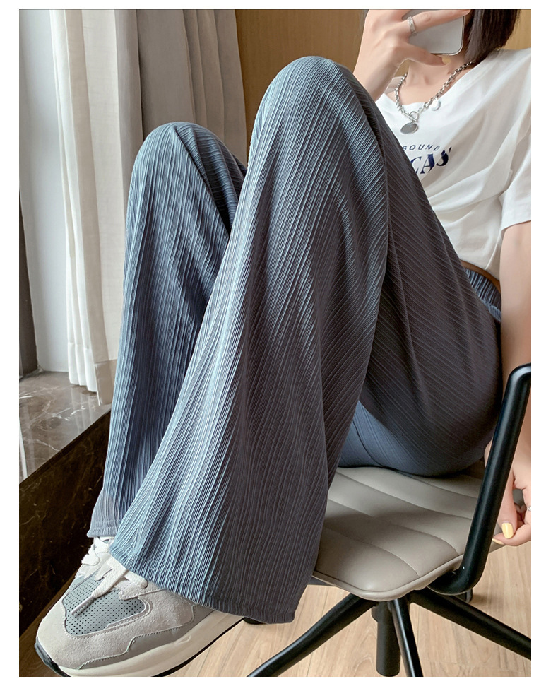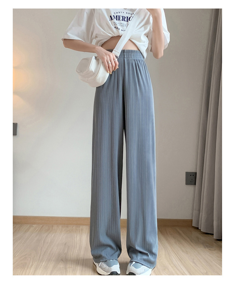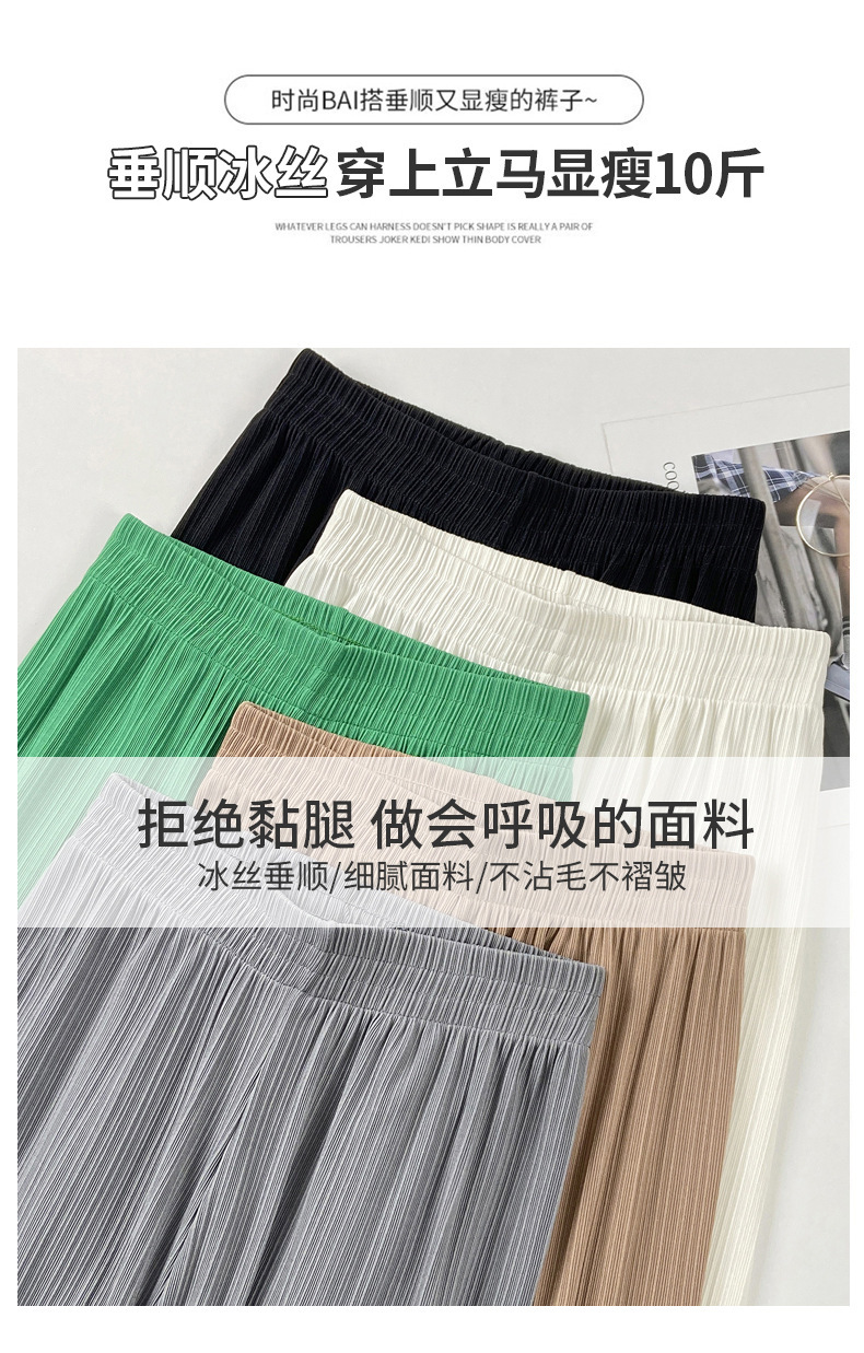 Широкие брюки H789 из ледяного шелка для женщин, тонкий шифон, с высокой талией, свободного прямого кроя, стройнящие, повседневные, в пол, для лета.