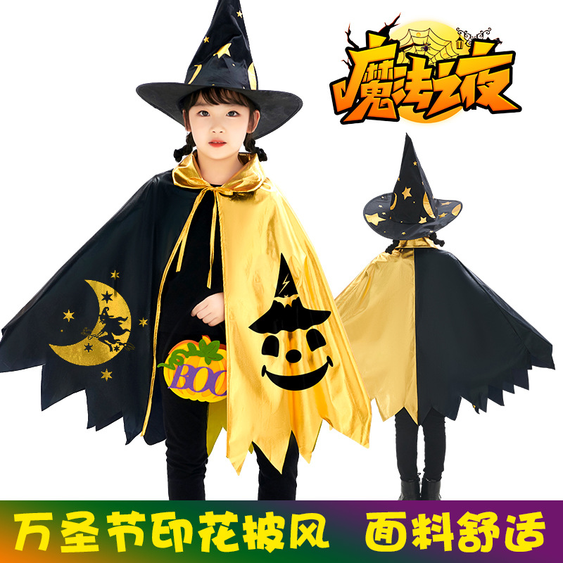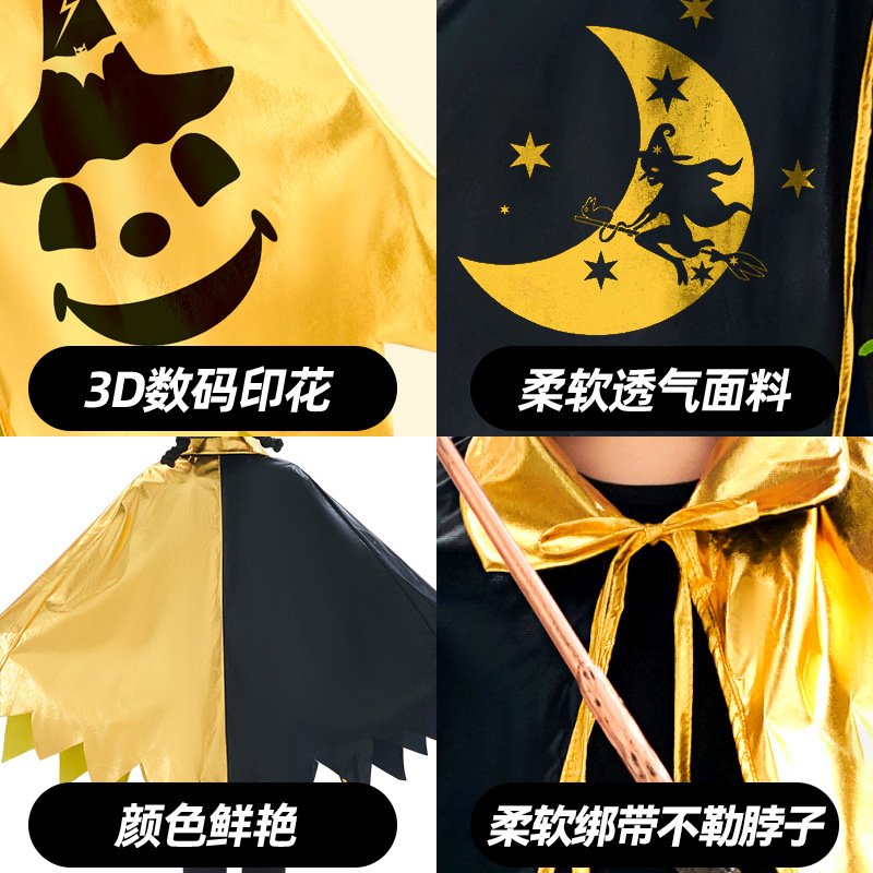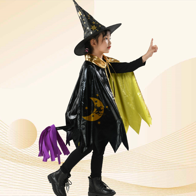 Трансграничный Новый Хэллоуин Детский Волшебник Плащ Звезды Плащ Пять звезд Черное золото Волшебник костюм Шляпа Набор