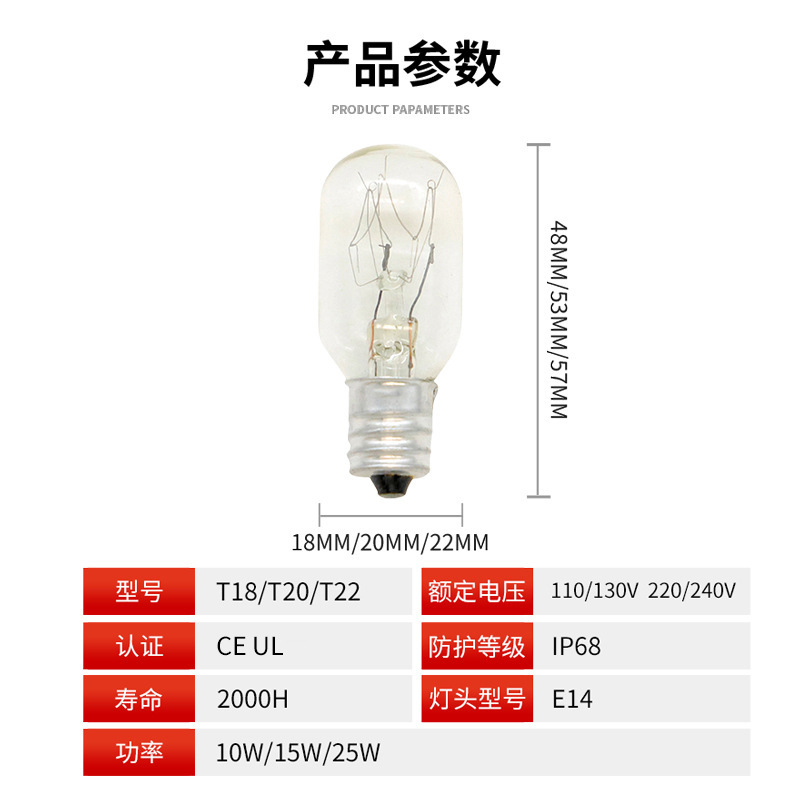 T18/T20/T22 230V15W E14 маленькая лампа для освещения холодильника миниатюрная лампа для соляной лампы