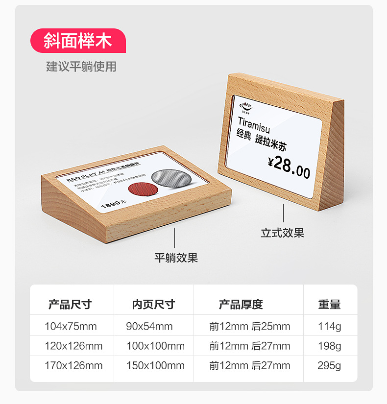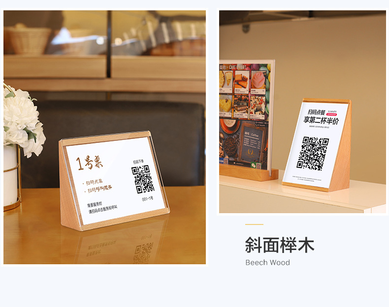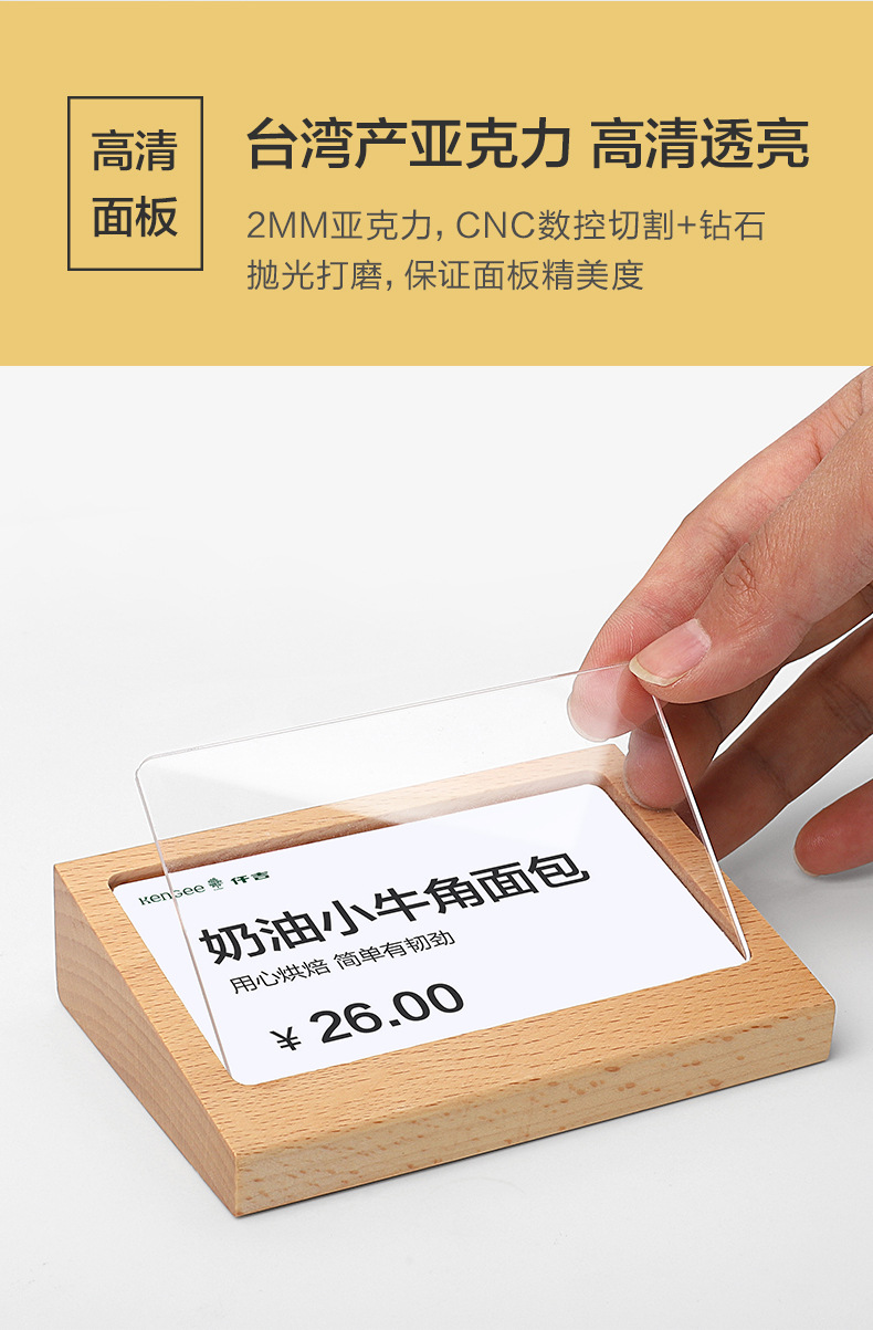 Этикетка из цельного дерева ценник рабочий стол акриловая наклонная вертикальная ценовая доска для макияжа Введение в параметры продукта