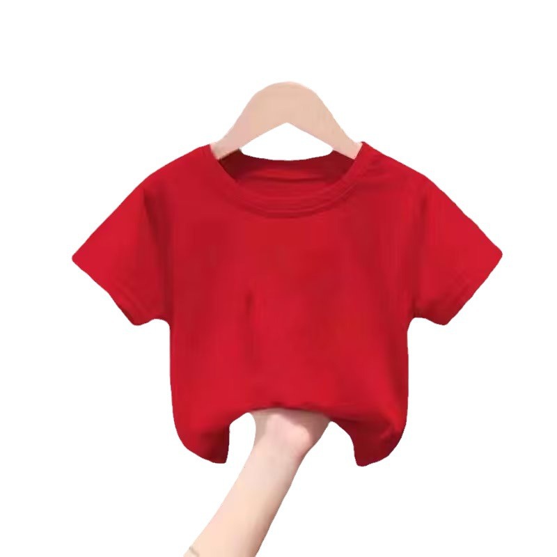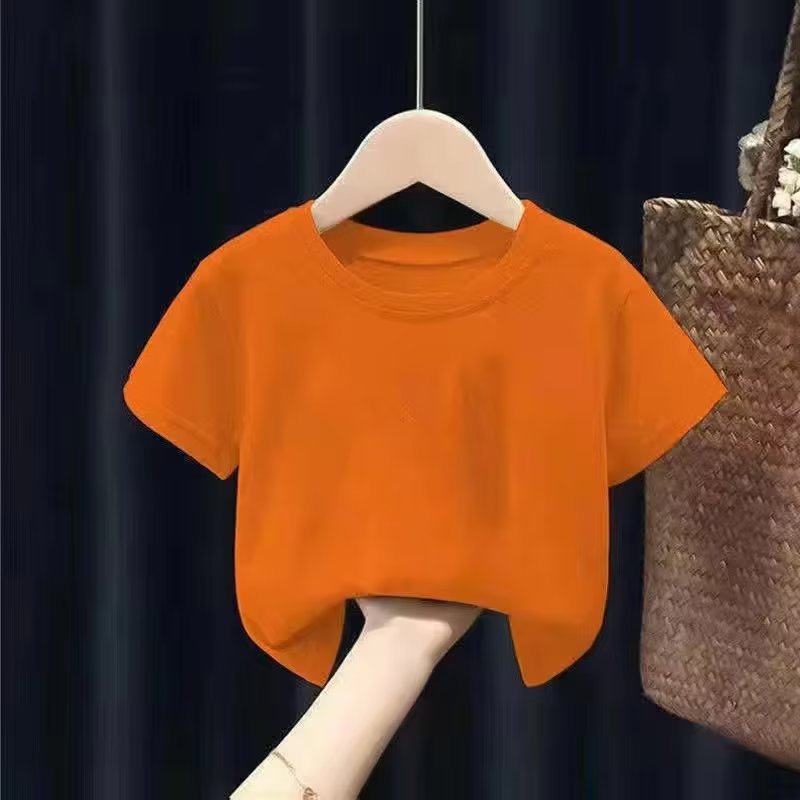 Детская одежда Летний новый сплошной цвет минималистская детская футболка с короткими рукавами Корейская версия сплошного цвета без рисунка