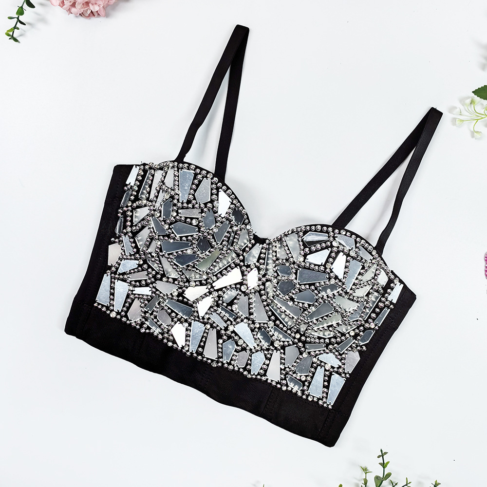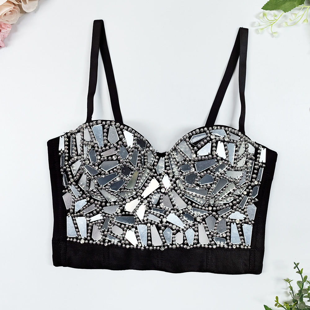 Европейский и американский сексуальный жилет на подтяжках, блестящий стеклянный лист, сценическая верхняя одежда, хит продаж, топ из рыбьей кости из бисера, высококачественный топ