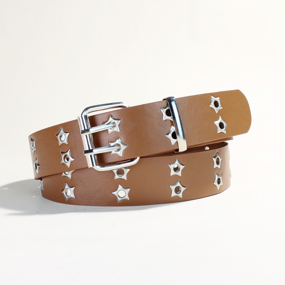 Корейская версия полый панк повседневный ремень дамы модные звезды воздушные глаза украшения хип-хоп двухрядный пояс женский пятно