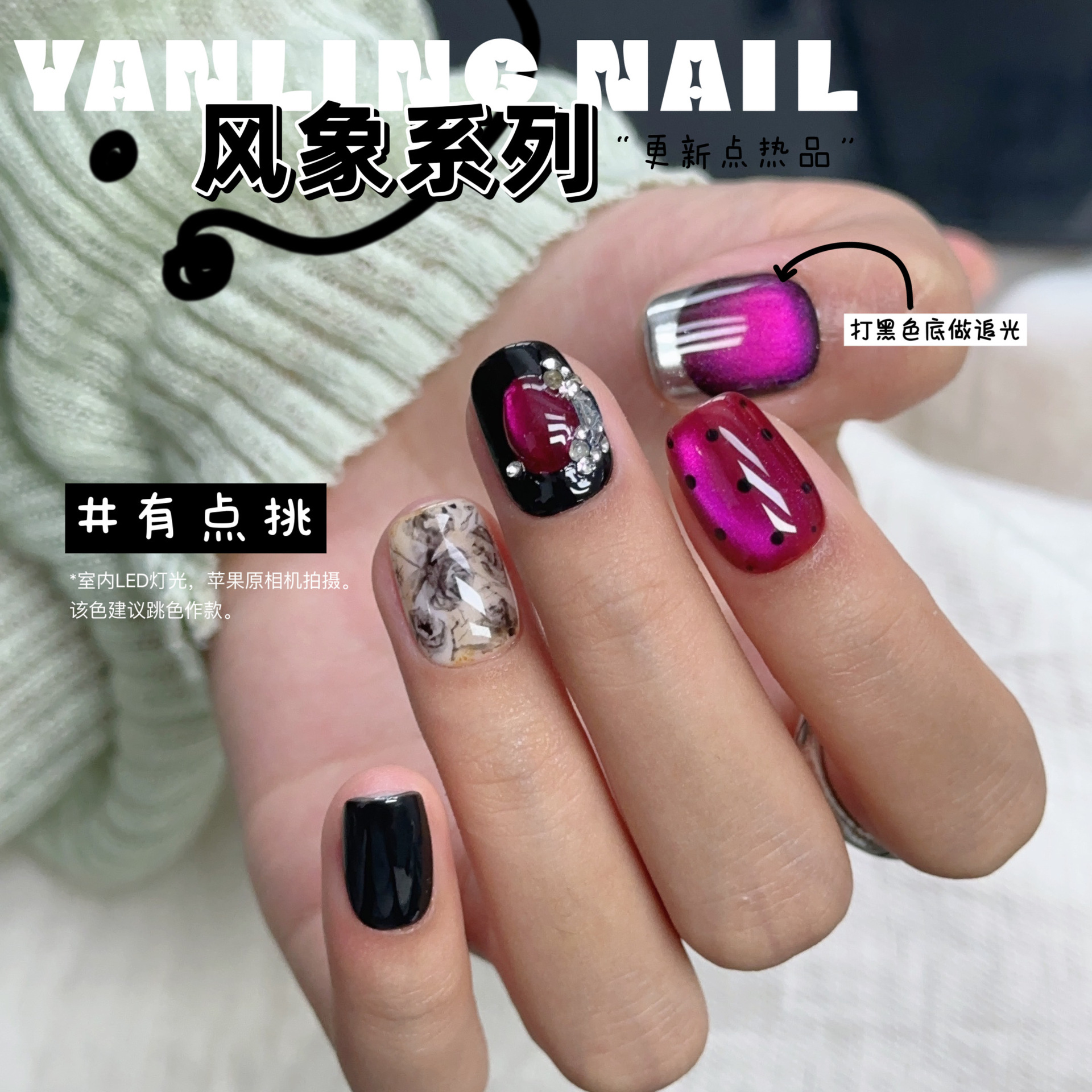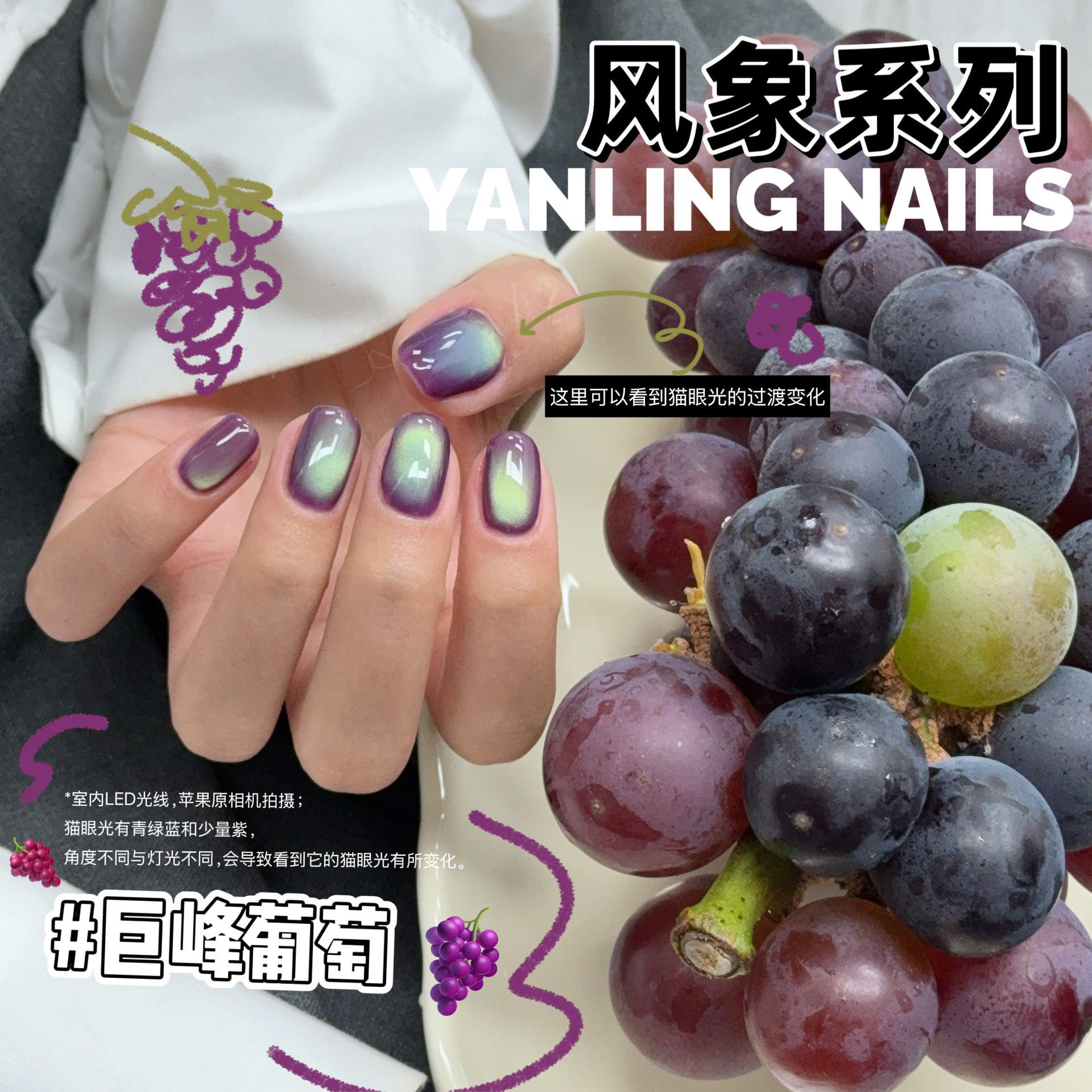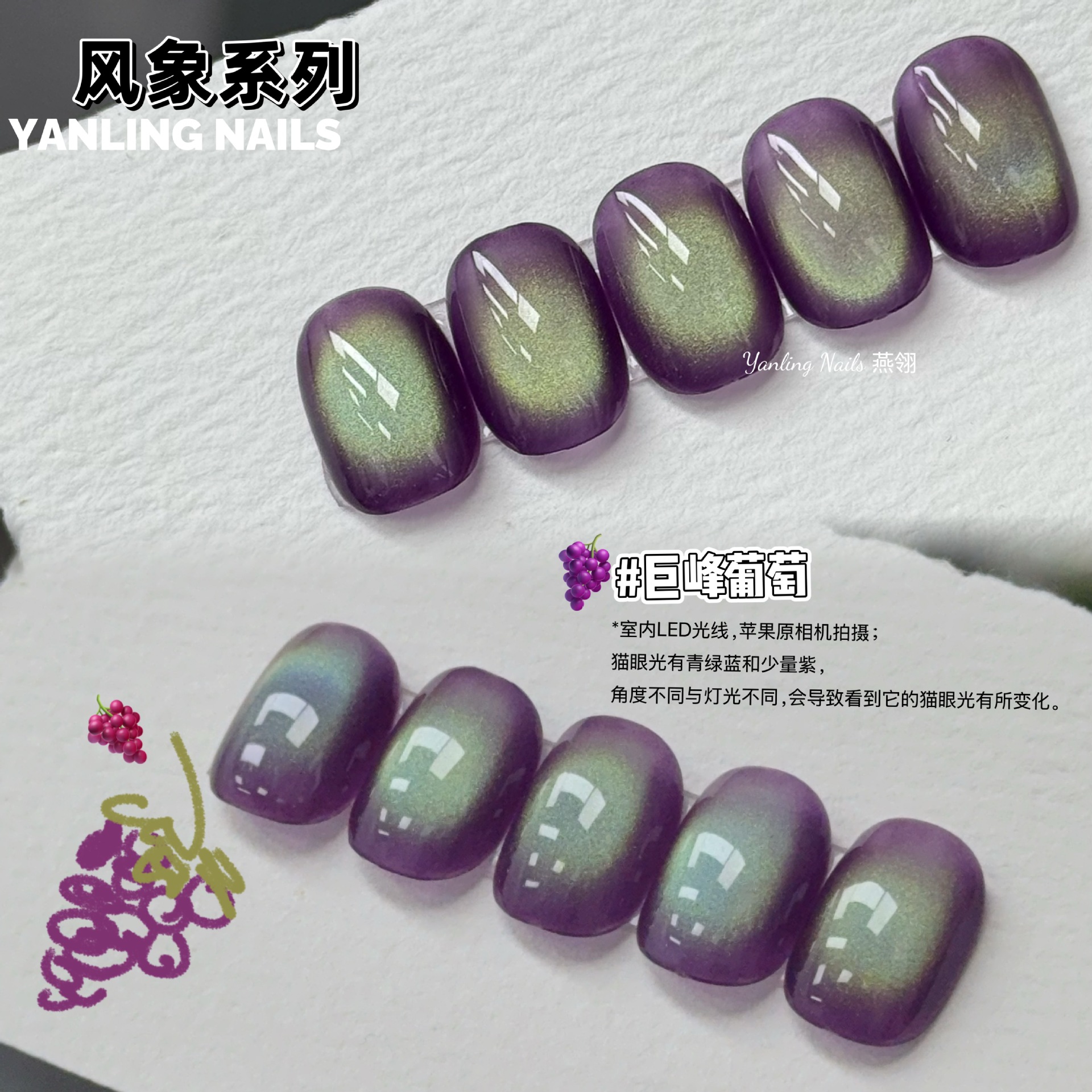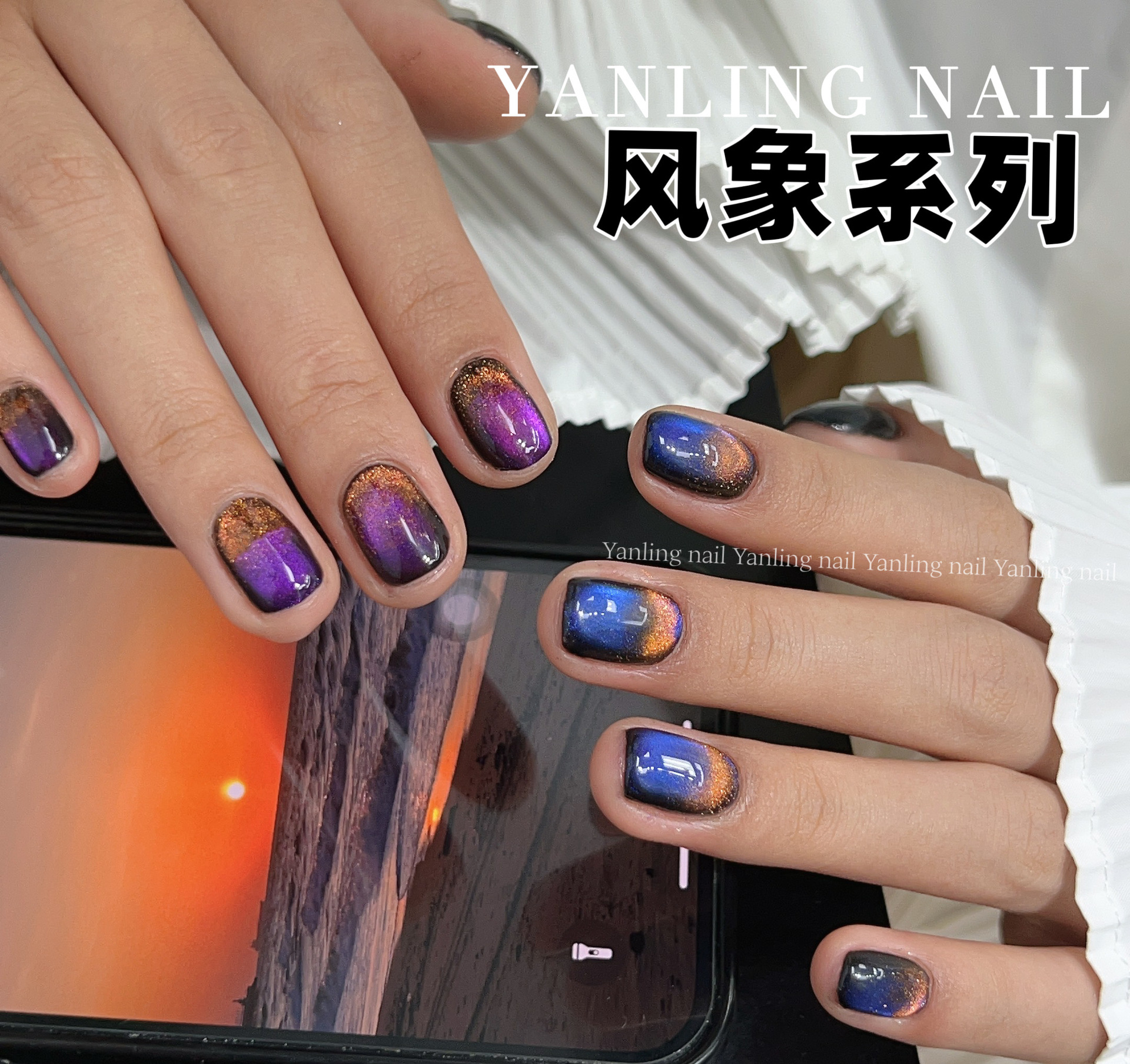 Популярная коллекция цветов серии Yan Ling Feng Xiang: Гель для ногтей «Гигантский пик» с эффектом кошачьего глаза, цвет «Инчжин», «Огненная облака», «Снежный день», «Таяние снега»
