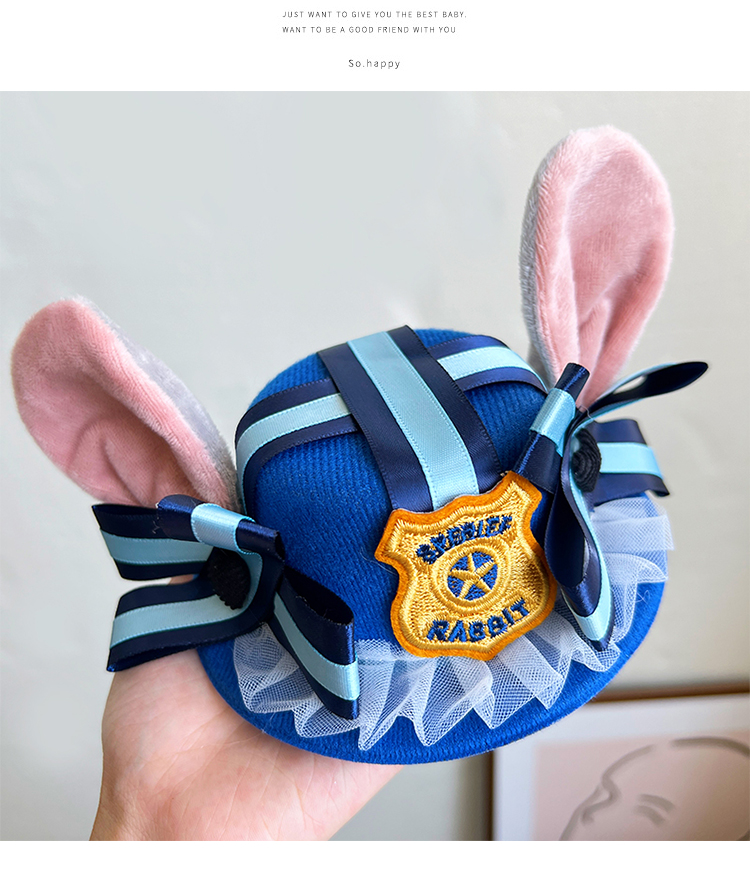 Джуди Шляпа Косплей Кролик Джуди Сумасшедший Животный Головной Убор Кролик Полицейский Дети Уши Шляпа Заколка для волос