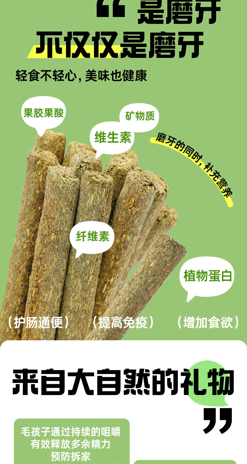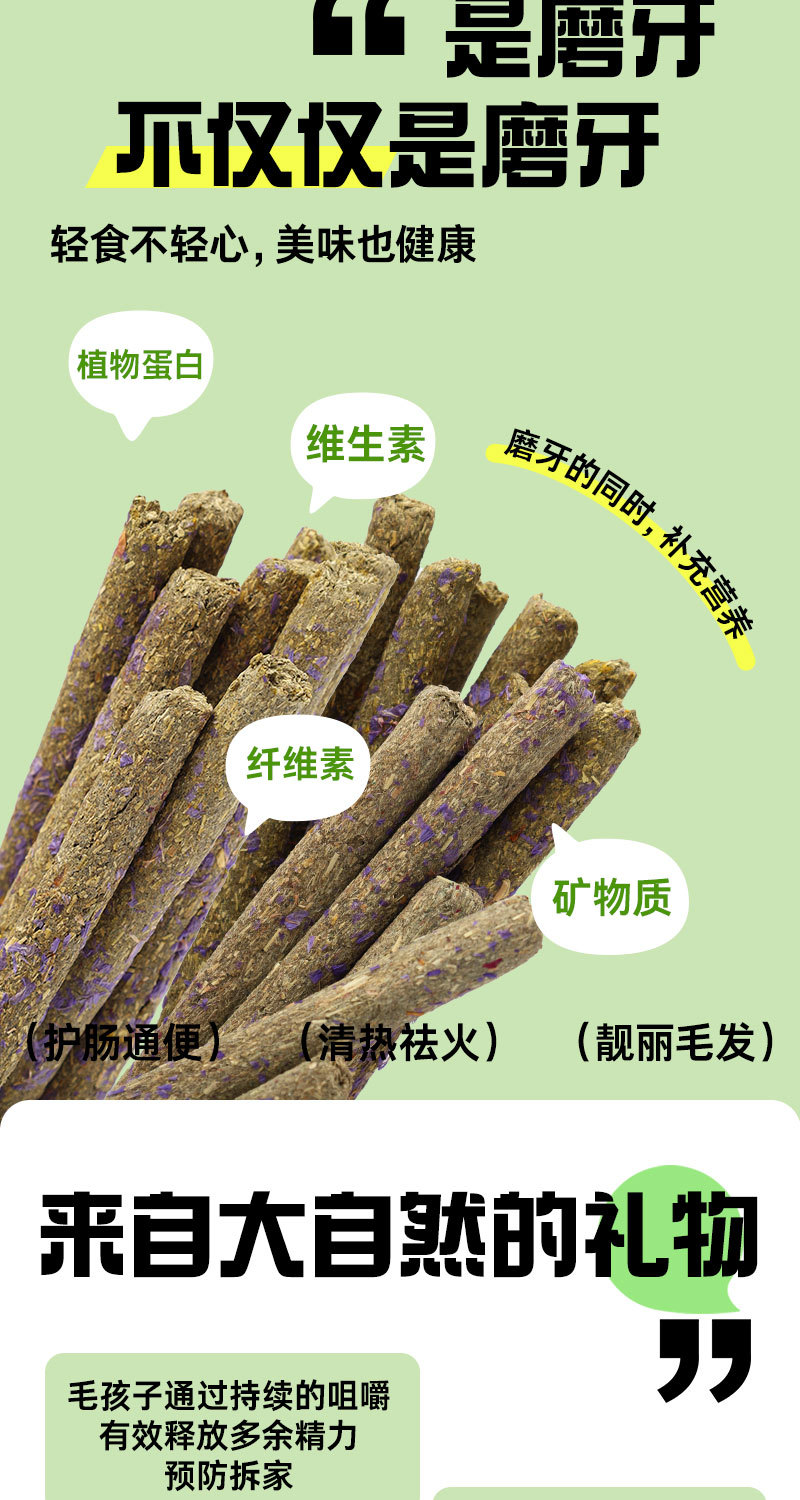 Тимоти/Яблоко-120г; Трава овсяная/Незабудка-120г; Морковь/Вишня-120г; Натуральный сладкий бамбук-120г; Натуральный стебель папайи-20г; Натуральное яблочное дерево-100г.