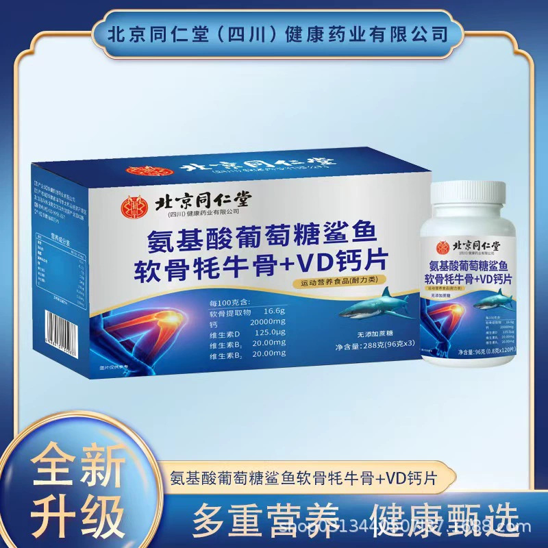 Таблетки Beijing Tongrentang с аминокислотами, глюкозой, экстрактом костной пасты акулы и витамином D + кальций [1 коробка из 3 флаконов] Оригинальный продукт доступен для оптовой продажи