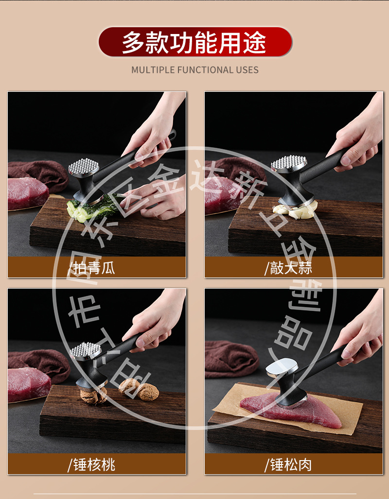 Двусторонний тендерайзер для мяса из цинкового сплава, молоток для отбивания мяса, двусторонний молоток-измельчитель, пресс для чеснока, кухонный инструмент