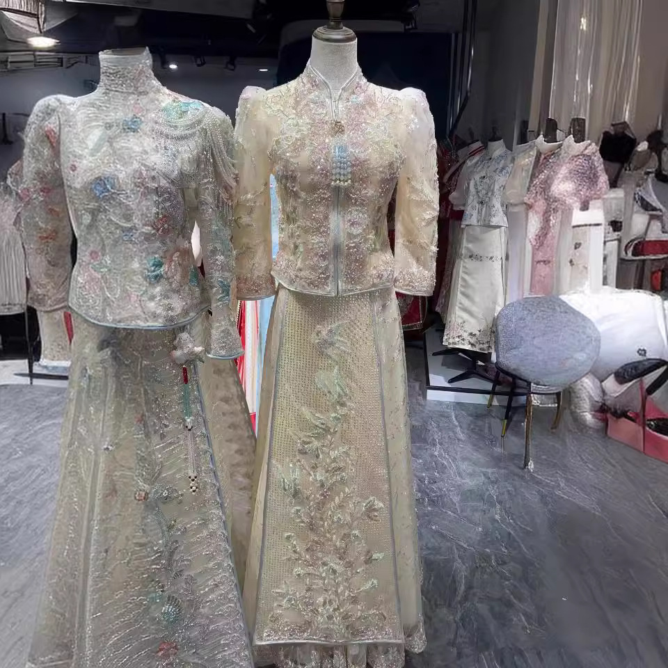 Женская одежда цвета шампанского светлого цвета Xiuhe, свадебное платье, новинка 2025 года, свадебная одежда в стиле шинуазри, одежда для невесты, тяжелой промышленности, тостов
